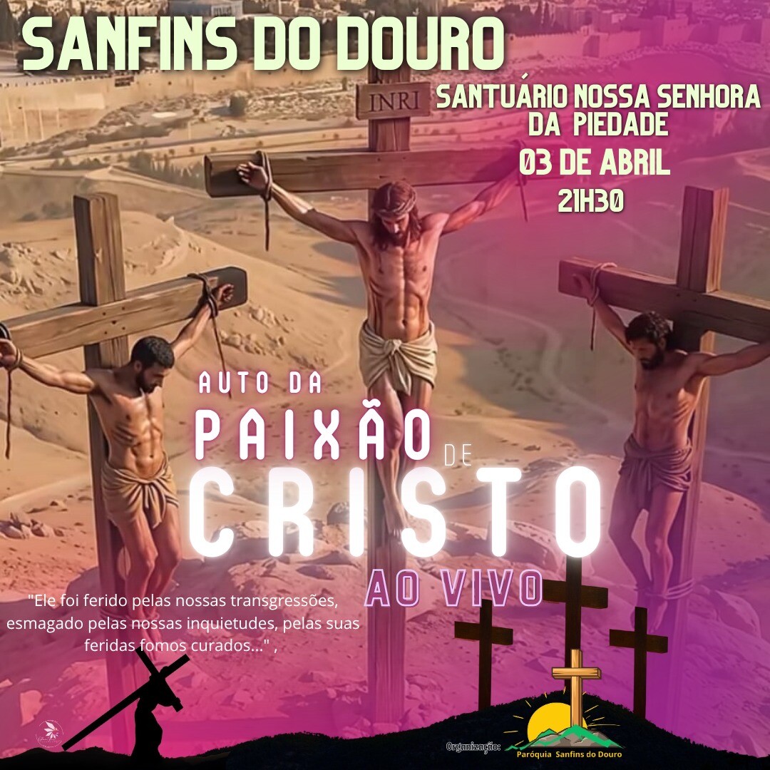 Adicionar a calendário2026-04-03 21:30:002026-04-03 21:30:00Europe/LisbonAuto da Paixão de Cristo ao Vivo - Sanfins do DouroSantuário de N.ª Sr.ª da Piedade - Sanfins do DouroParóquia de Sanfins do Douro