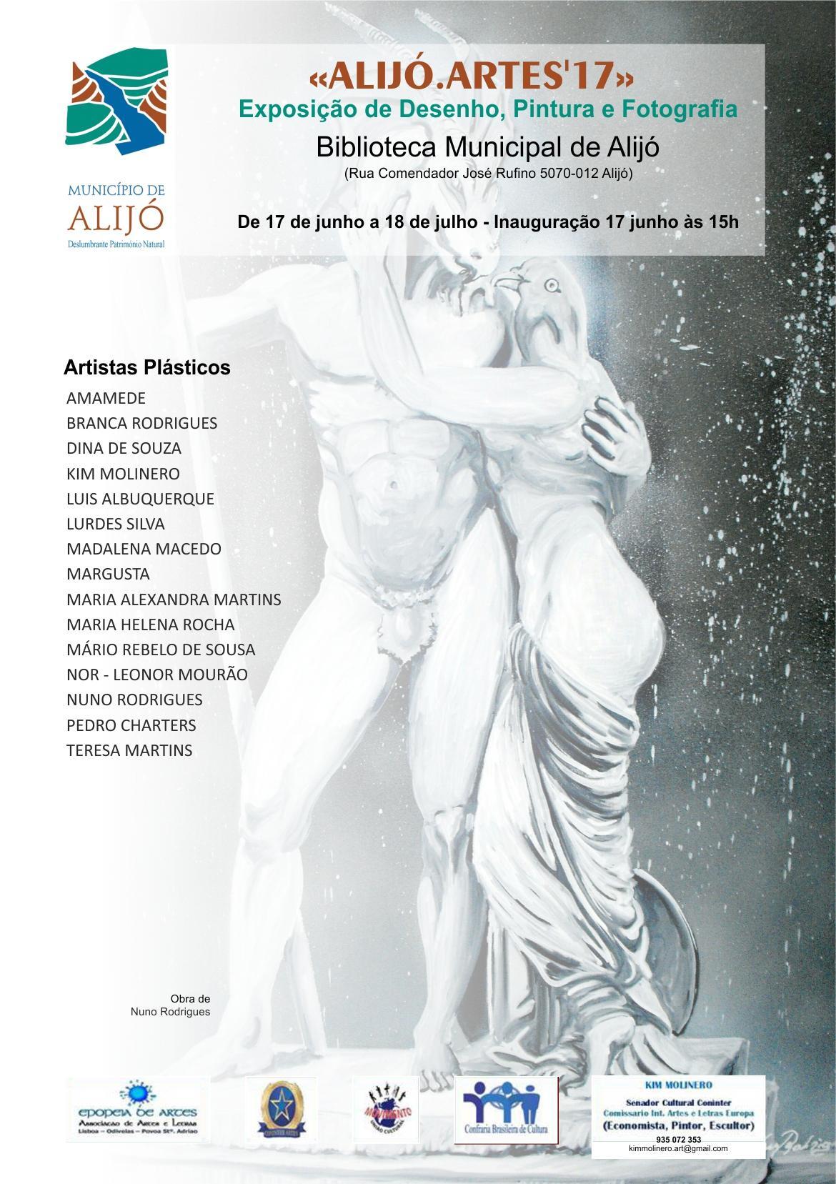 A pintora surrealista romântica Dina de Souza, com raízes em Alijó e Pinhão, vai expor de 17 de junho a 18 de julho, na Biblioteca Municipal de Alijó, a exposição "ALIJÓ.ARTES '17", uma exposição de pintura, desenho e fotografia.