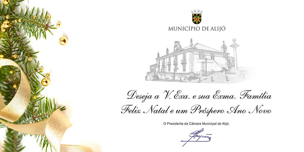 O Município de Alijó deseja a V. Exa. e sua Exma. Família um Feliz Natal e Próspero Ano Novo.