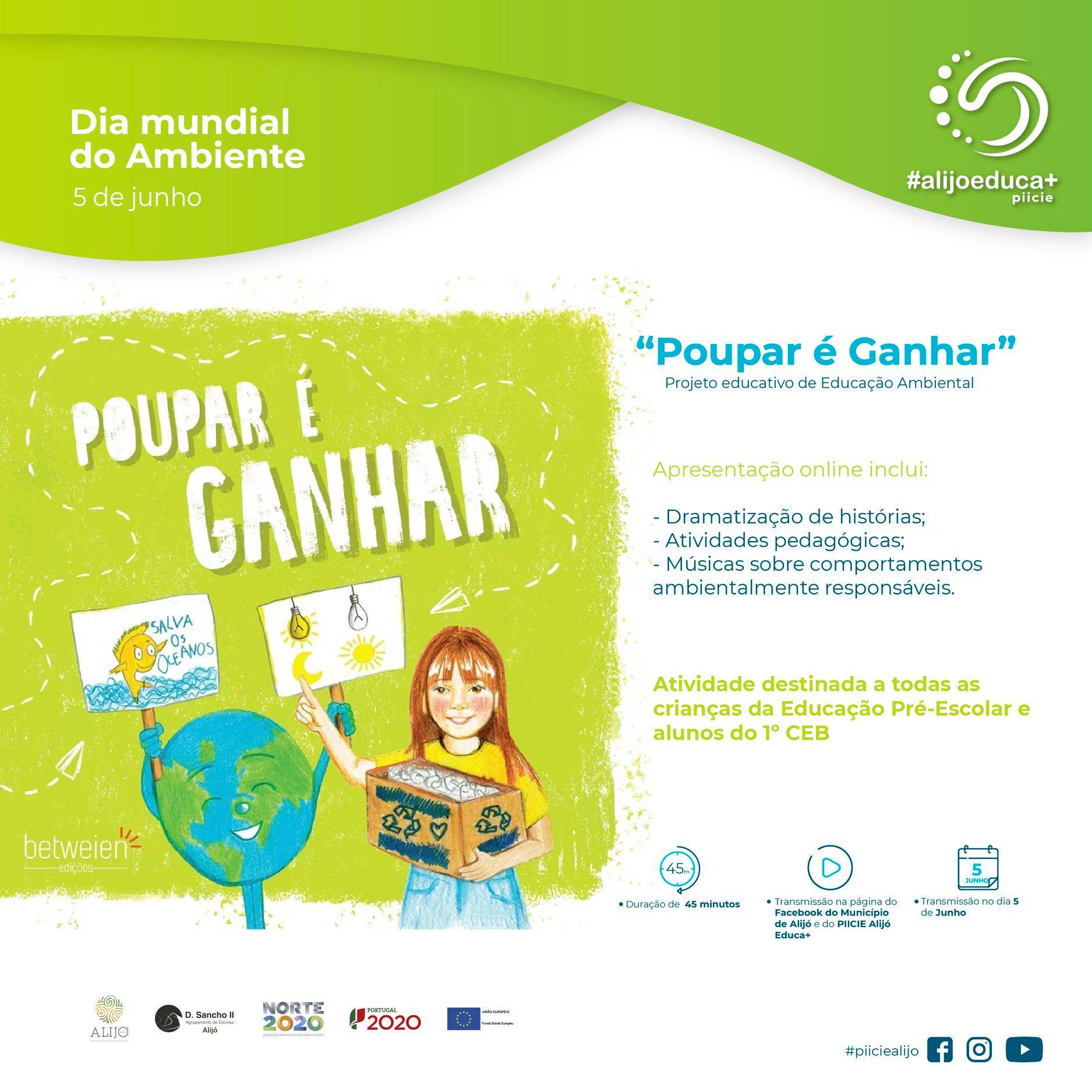 O Município de Alijó vai dedicar o Dia Mundial do Ambiente às crianças da Educação Pré-Escolar e do 1.º ciclo do Ensino Básico do concelho, que poderão assistir à transmissão online da atividade educativa “Poupar é Ganhar”, onde serão abordados conteúdos pedagógicos sobre comportamentos ambientalmente responsáveis ou a promoção da preservação e sustentabilidade do ambiente.