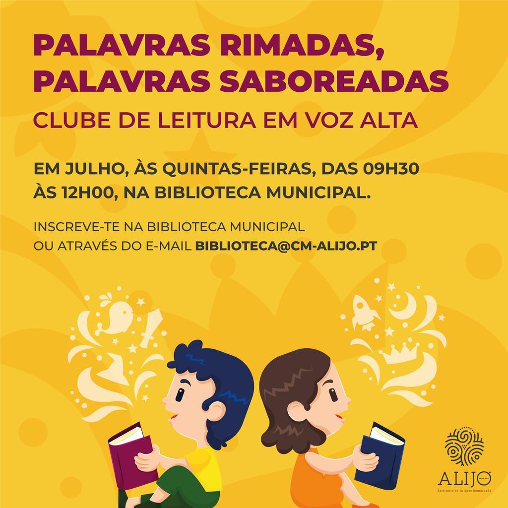 Estão abertas as inscrições para o "Clube de Leitura em Voz Alta: Palavras Rimadas/Palavras Saboreadas", que vai decorrer durante o mês de julho, todas as quintas-feiras, na Biblioteca Municipal de Alijó.