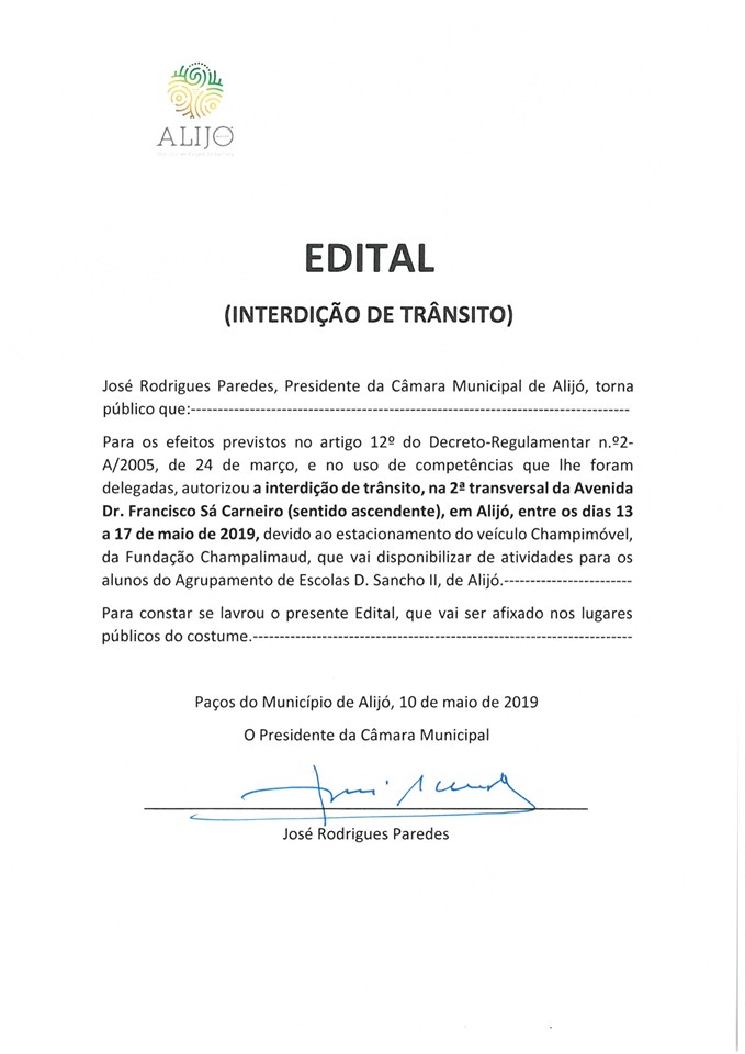 Consulte as interdições/condicionamentos de trânsito que vão decorrer entre o período de 13 a 17 de maio.