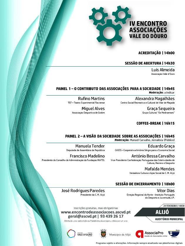 O encontro realiza-se a 24 de fevereiro no Auditório Municipal de Alijó a partir das 14h00. Veja o programa e inscreva-se gratuitamente em: www.encontrodeassociacoes.ascvd.pt