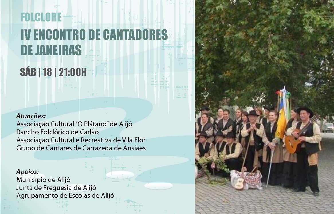 Não deixe de assistir ao IV Encontro de Cantadores de Janeiras, no Teatro Auditório Municipal de Alijó, sábado, dia 18, pelas 21.00h.