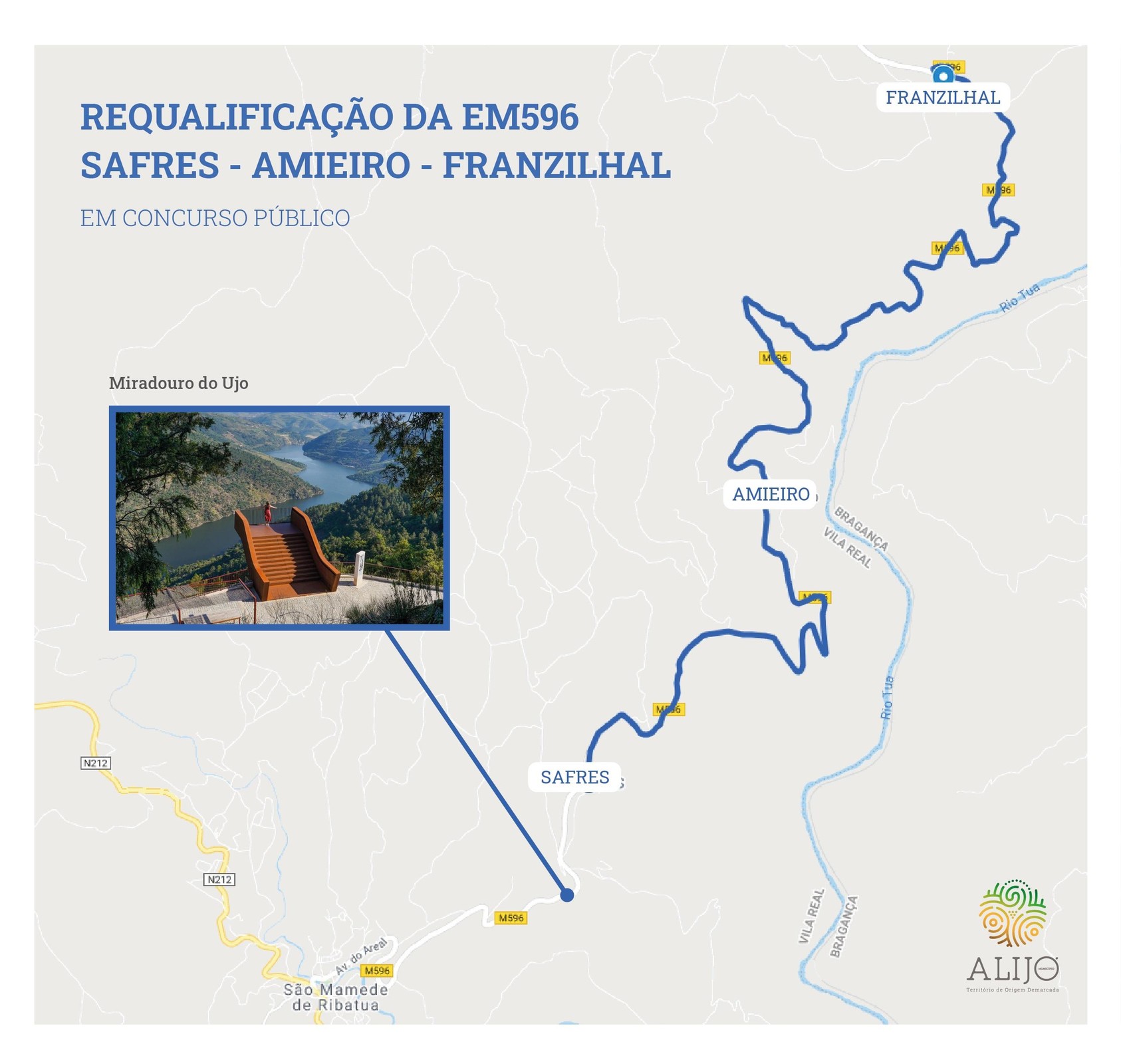 A requalificação da EM596 é complementar a outros investimentos já implementados ou em curso, nomeadamente os miradouros do Ujo, da Senhora da Cunha e de Santa Bárbara, em Santa Eugénia, os percursos pedestres das Fragas Más, da Senhora da Cunha e de Santa Eugénia - Carlão, ou a Porta de Entrada no Vale do Tua, em São Mamede de Ribatua.