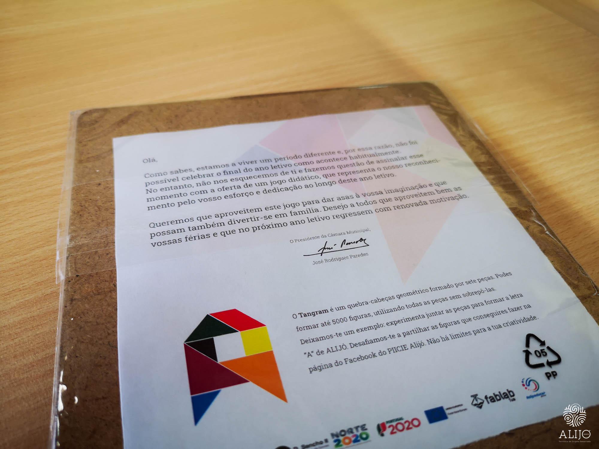 A Câmara Municipal de Alijó distribuiu um jogo didático a todas as crianças do Ensino Pré-Escolar e alunos do 1º ciclo do Ensino Básico do Concelho. Assinala assim, de forma simbólica, o fim deste ano letivo atípico, de forma a mostrar o seu reconhecimento pelo esforço e dedicação de todos, ao longo dos últimos meses.