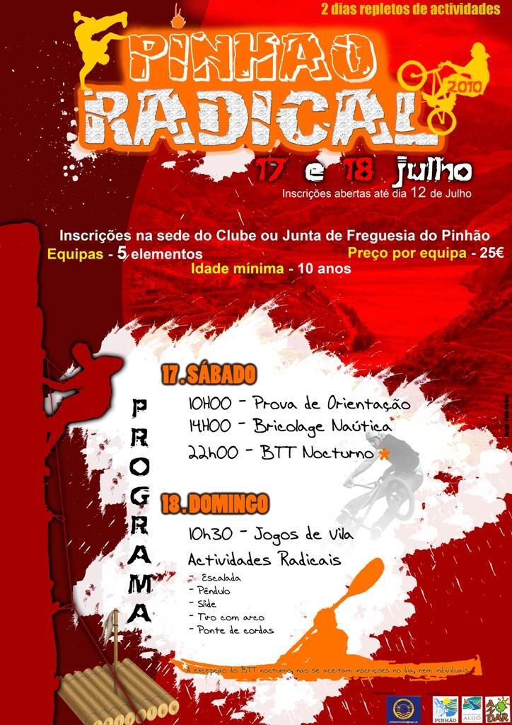 Nos dias 17 e 18 de Julho, o Clube Pinhoense, juntamente com a Junta de Freguesia do Pinhão, o Município de Alijó e a Associação ANDAR de Cucujães, vão levar a efeito mais uma edição do Pinhão Radical. Este evento, que traz a esta vila duriense muitos amantes do desporto, contará com diversas modalidades em dois dias repletos de adrenalina.