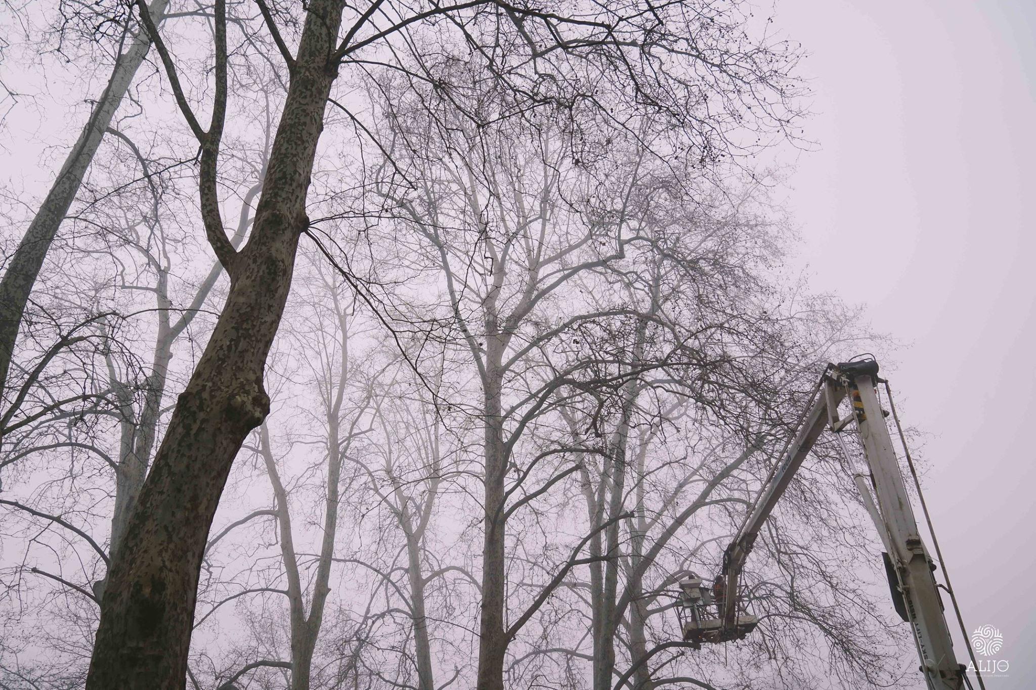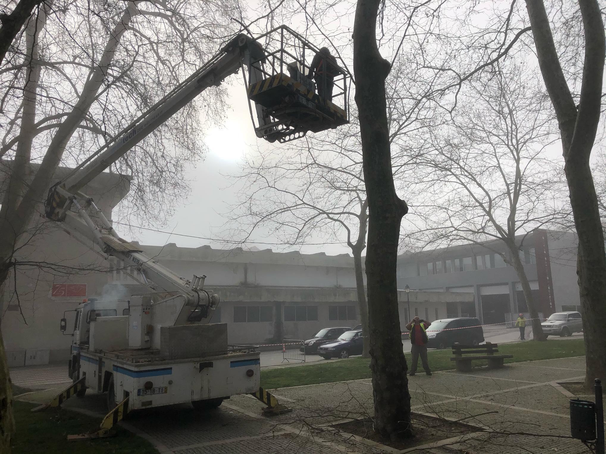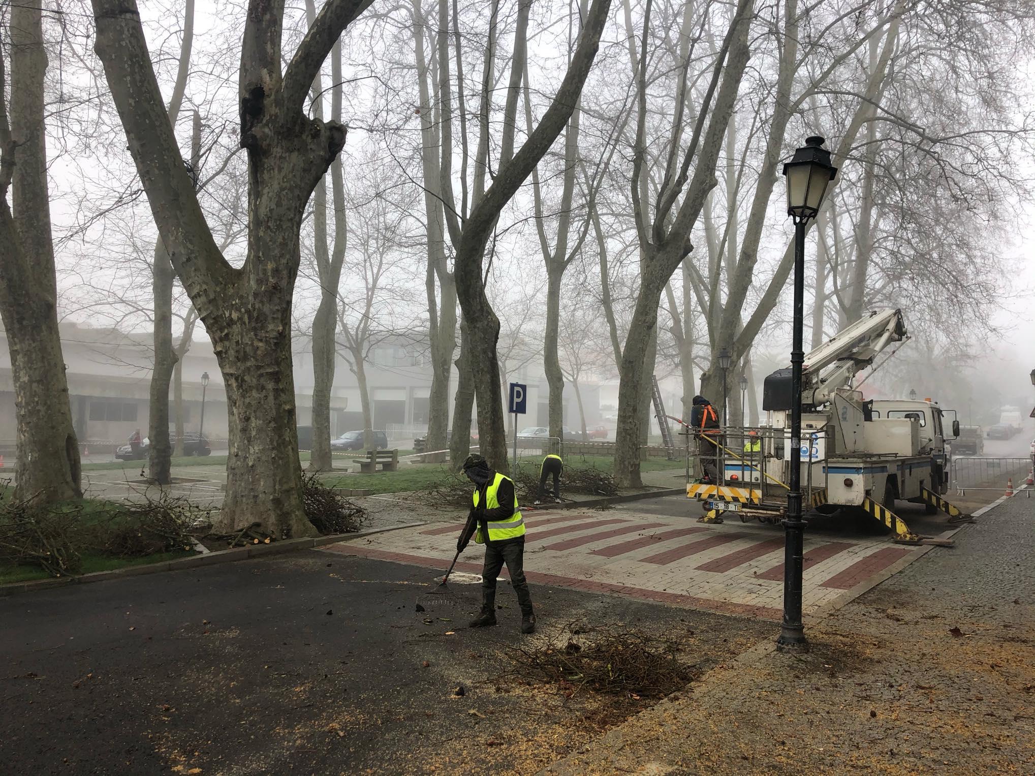 Os trabalhos incluem a limpeza de ramos secos ou que estão próximos de edifícios, com recurso a uma grua e cordas. Em alguns casos, as árvores encontram-se em conflito com edifícios contíguos devido à grande proximidade, o que obriga a proceder à sua poda e manutenção. O mesmo acontece com os ramos secos que estão a ser retirados por colocarem em risco a segurança de pessoas e bens.