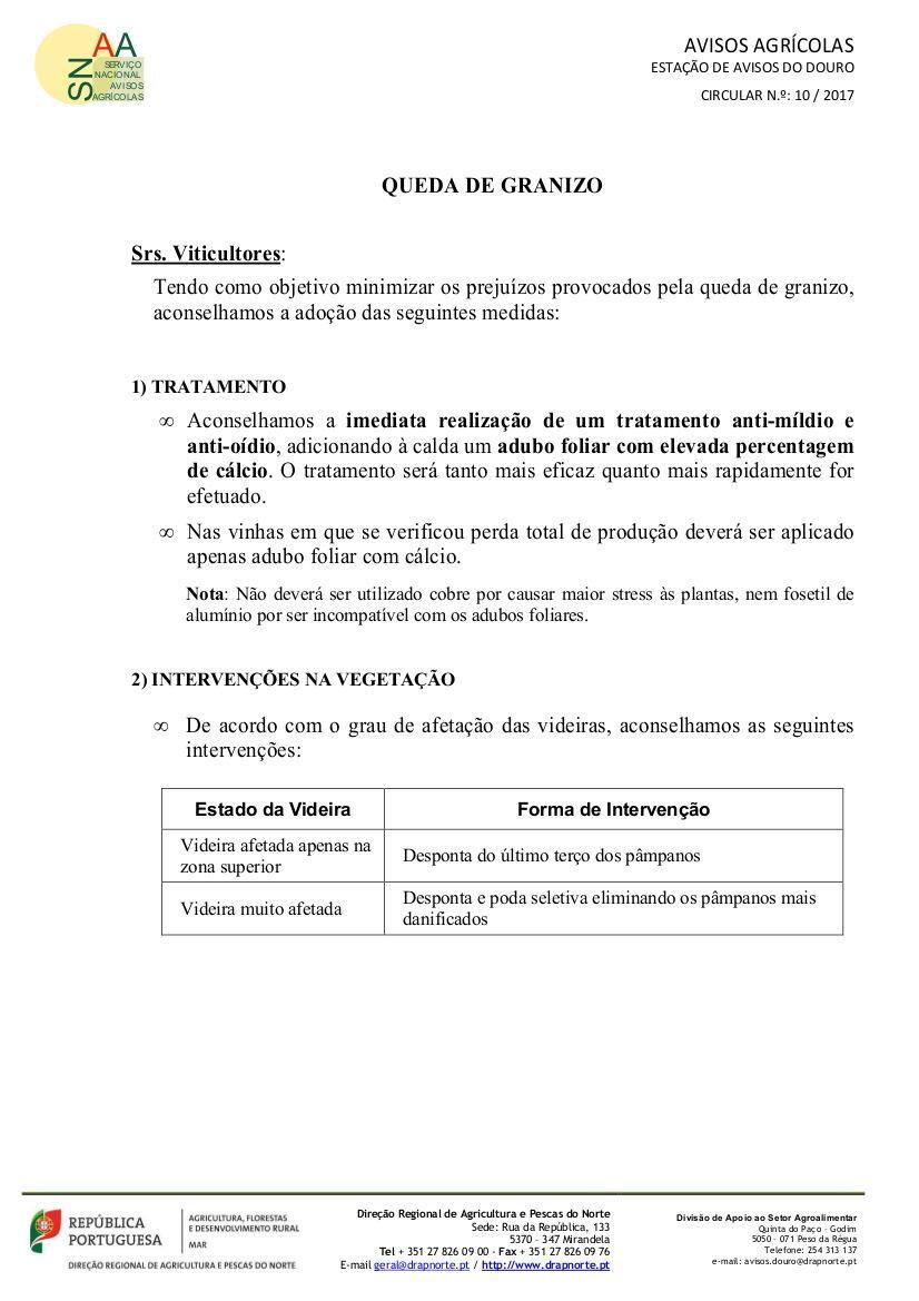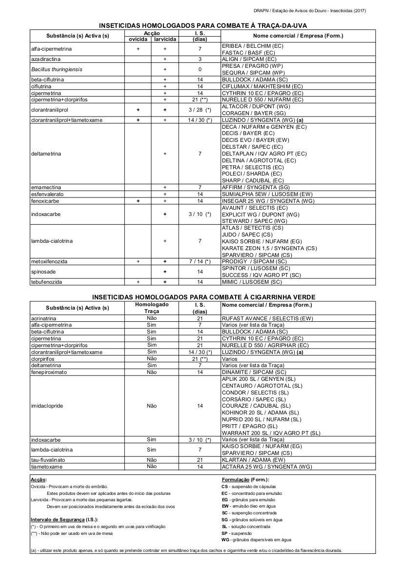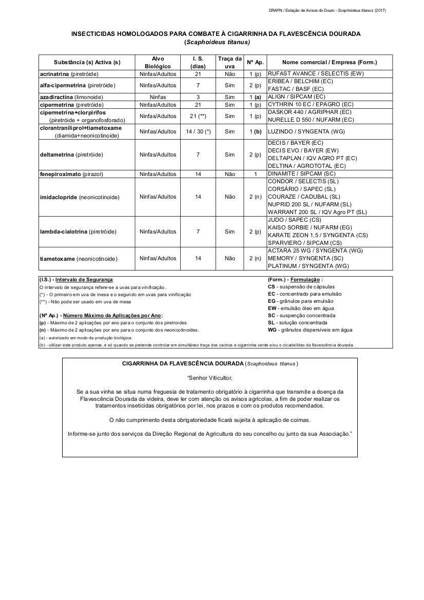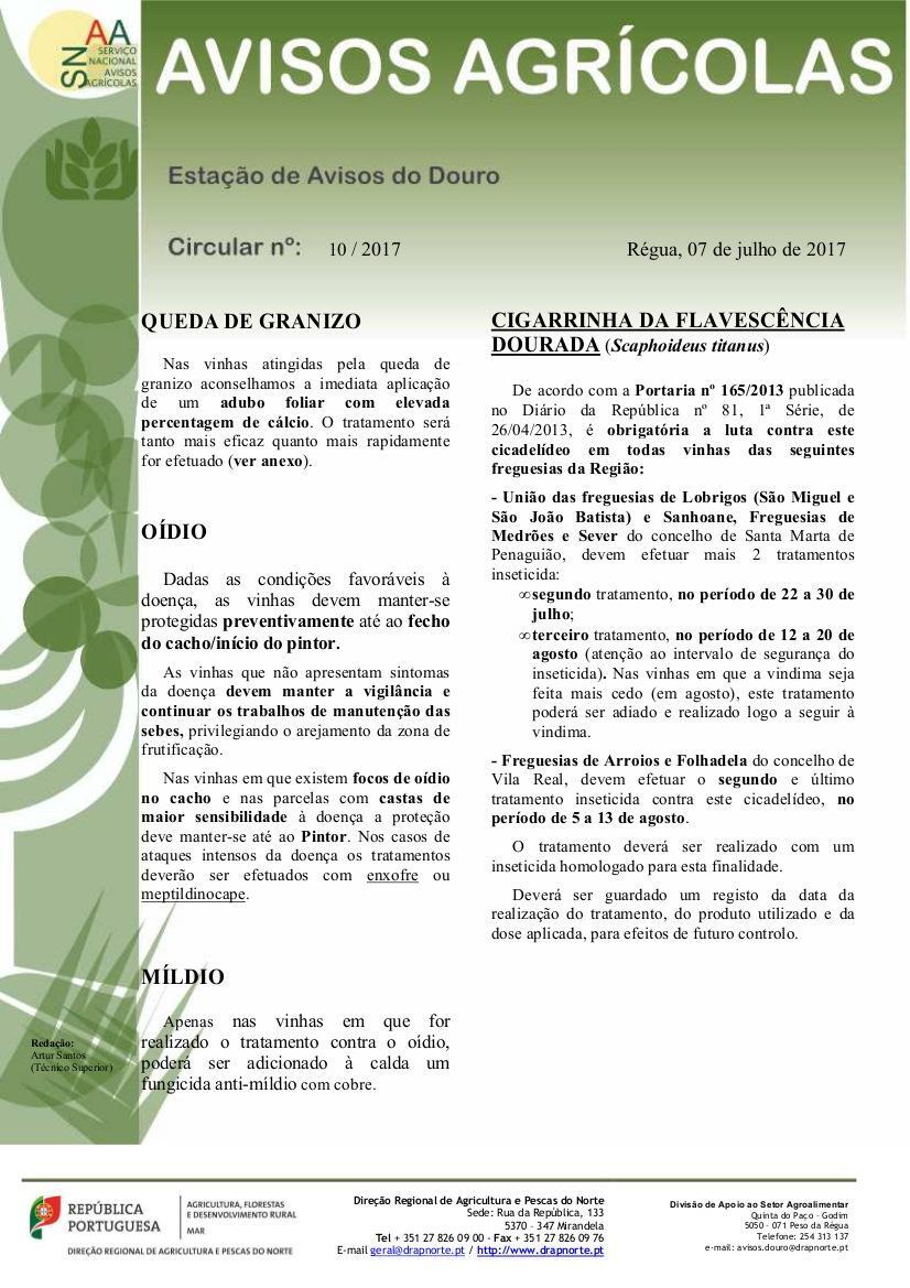 Informação da Estação de Avisos do Douro – Conselhos de aplicação de produtos fitofármacos