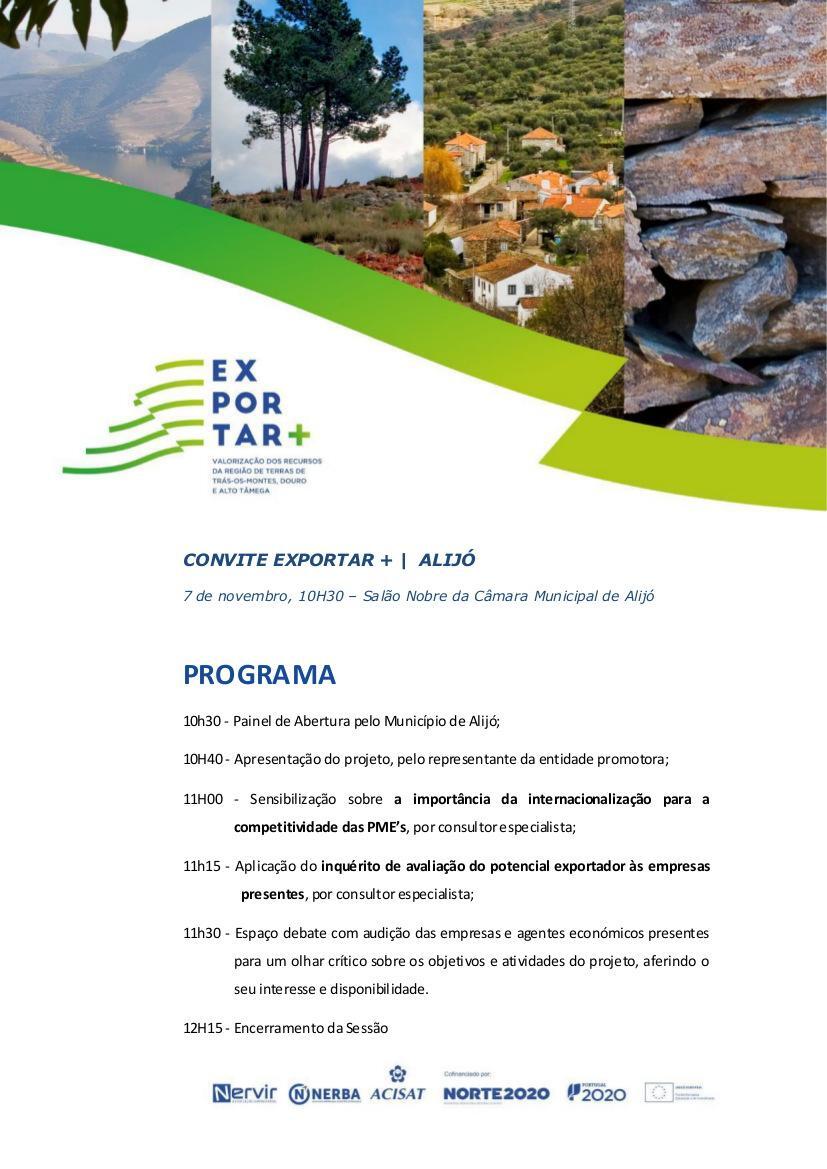 Valorização dos Recursos da Região de Terras de Trás-os-Montes, Douro e Alto Tâmega - 7 de novembro no salão Nobre do Município de Alijó