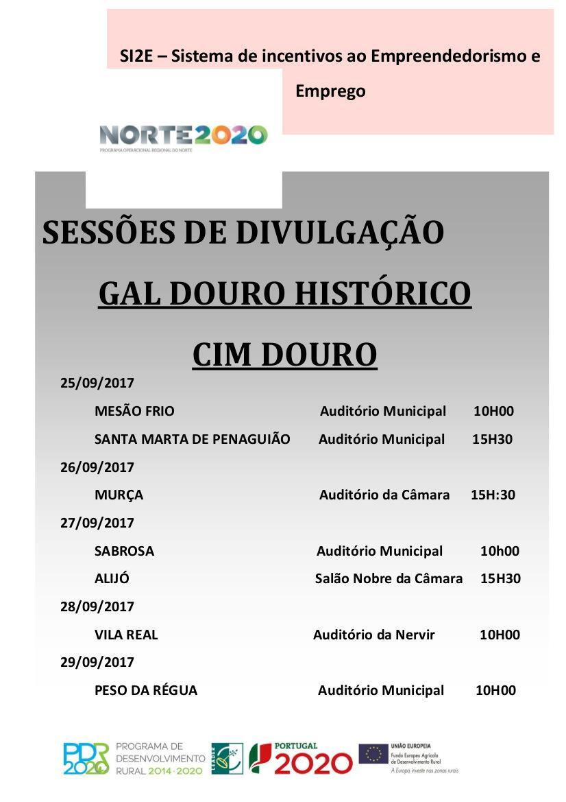 A primeira fase das candidaturas para o SI2E - Sistema de Incentivos ao Empreendedorismo e ao Emprego, encontram-se abertas até ao dia 30 de Outubro de 2017, na ASSOCIAÇÃO DOURO HISTÓRICO, ADH /Grupo de Ação Local, GAL, em Sabrosa. Trata-se de um conjunto de apoios com fundos comunitários, que visam essencialmente potenciar a empregabilidade, estimular o empreendedorismo qualificado, e contribuir para o aumento da coesão social do território.