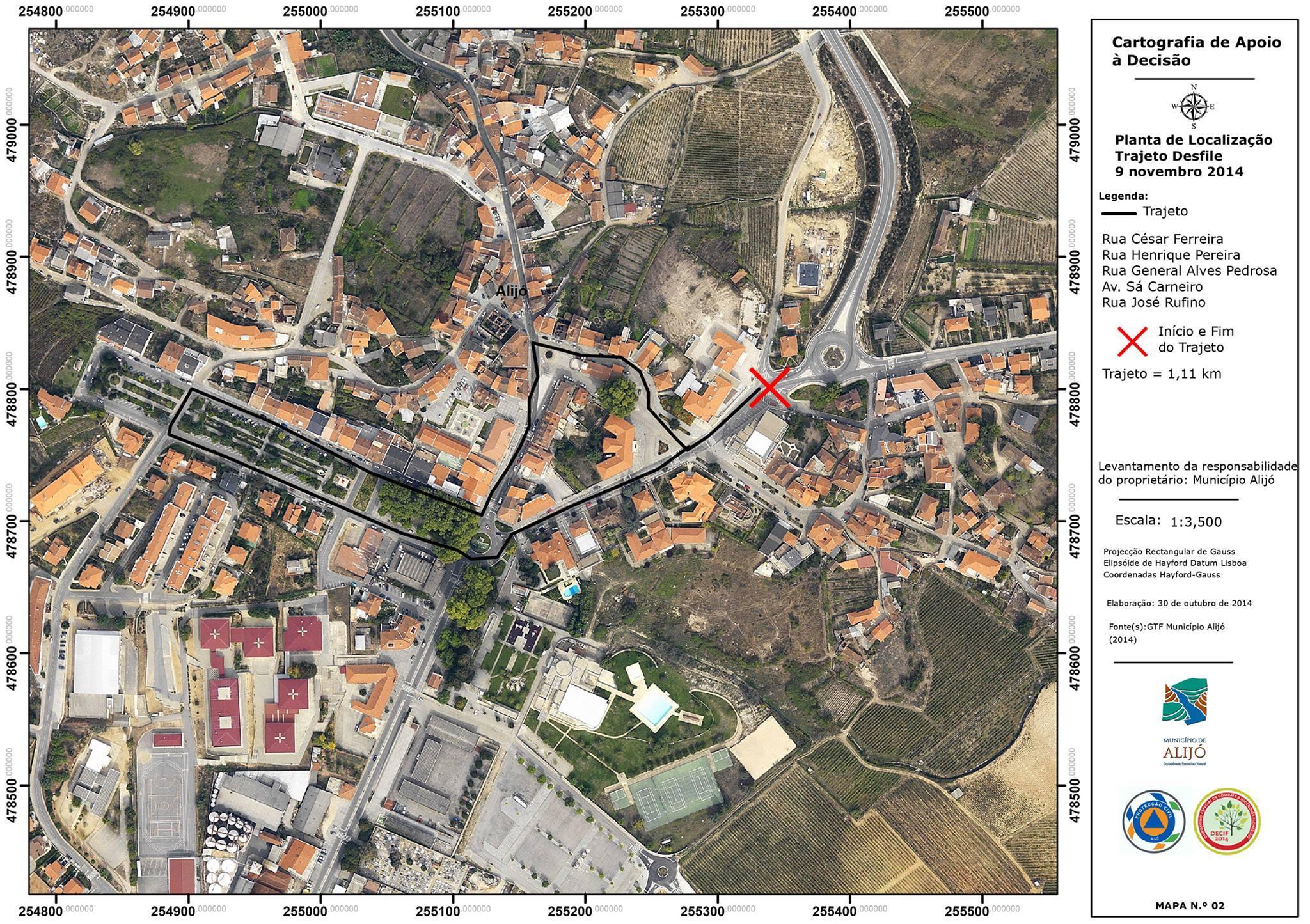 Trajeto do Desfile com Recriação Histórica (Época Manuelina), integrado nas Comemorações dos 500 Anos da Atribuição do Foral de D. Manuel I à Vila de Alijó.