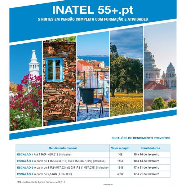 Estão abertas as candidaturas ao INATEL 55+.pt, um programa da Fundação INATEL que se destina a pessoas com 55 anos ou mais e que lhes permite viajar para vários pontos do país a preços ...11 Fevereiro 2020 -