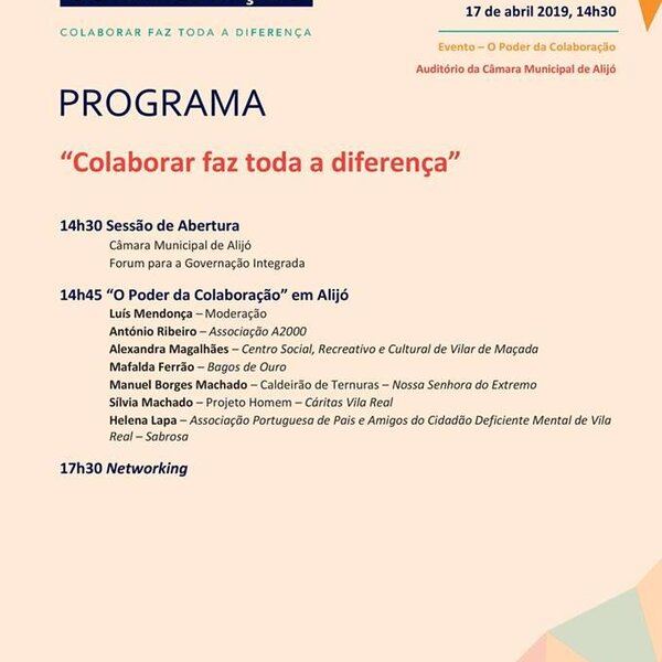 No dia 17 de abril, O Município de Alijó é a entidade anfitriã de O Poder da Colaboração, que conta com a organização conjunta do Forum para a Governação Integrada - GovInt.