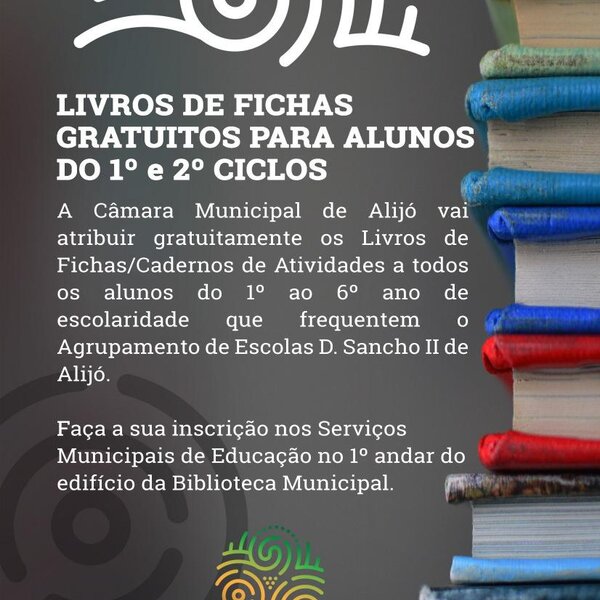 A Câmara Municipal de Alijó vai atribuir gratuitamente os Livros de Fichas/Cadernos de Atividades a todos os alunos do 1º ao 6º ano de escolaridade que frequentem o Agrupamento de Escolas D. ...20 Agosto 2018