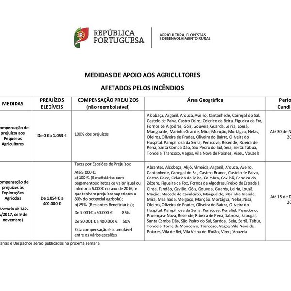 Apoios aos agricultores afetados pelos incêndios- medidas e prazos candidaturas.