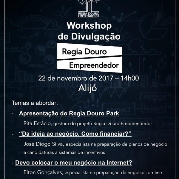 Workshop de Divulgação do projeto Regia Douro Empreendedor – 4ª feira, dia 22 de novembro, pelas 14h00, no Salão Nobre de Alijó.