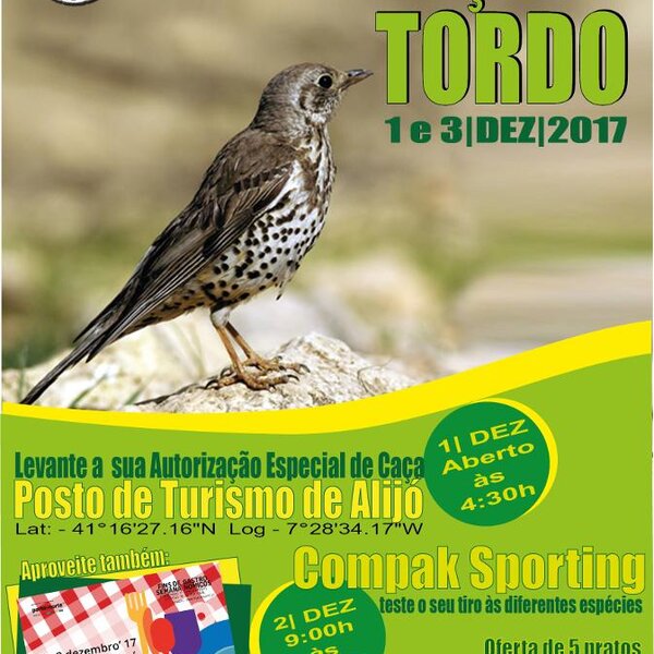 No dia 1 de dezembro é a abertura de caça aos tordos. Este ano a entrega das autorizações especiais de caça vai ser efetuada no Posto de Turismo.