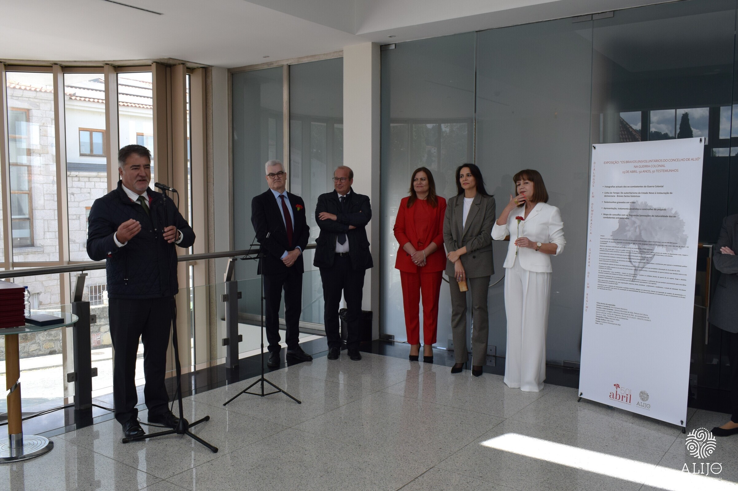 Durante a tarde, decorreu a apresentação do Estudo “50 anos, 50 testemunhos: Os Bravos (In)Voluntários do Concelho de Alijó”, da autoria da professora Ana Sampaio Monteiro. Este estudo teve por base 50 testemunhos de antigos Combatentes do Concelho, recolhidos de forma aleatória por todas as freguesias. A exposição fotográfica que resultou deste estudo estará patente no Teatro Auditório Municipal até ao fim do mês maio. A cerimónia inclui a declamação de poemas a cargo de Maria Carvalho e Souto.