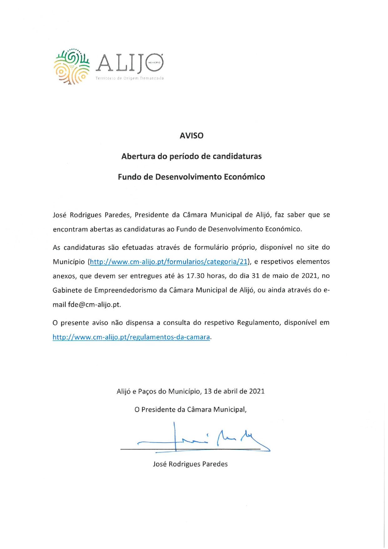 Estão abertas as candidaturas ao Fundo de Desenvolvimento Económico, através do qual o Município de Alijó vai atribuir um apoio extraordinário a empresas e empresários em nome individual com um volume de negócios no ano anterior que não ultrapasse 150.000,00€.