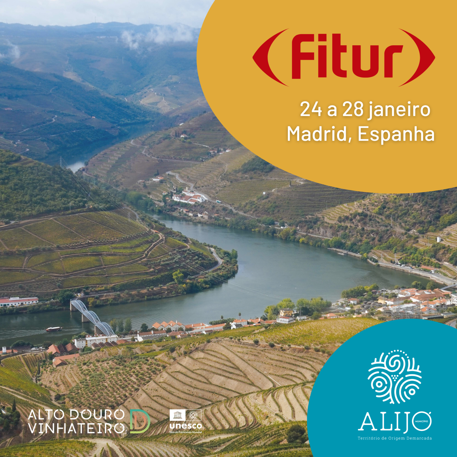 O Município de Alijó estará presente na Feira Internacional de Turismo (FITUR), em Madrid, com o objetivo de promover o território e divulgar o destino turístico e os produtos do nosso Concelho. Alijó apresenta-se na FITUR integrado no stand da CIM Douro, de 24 a 28 de janeiro.