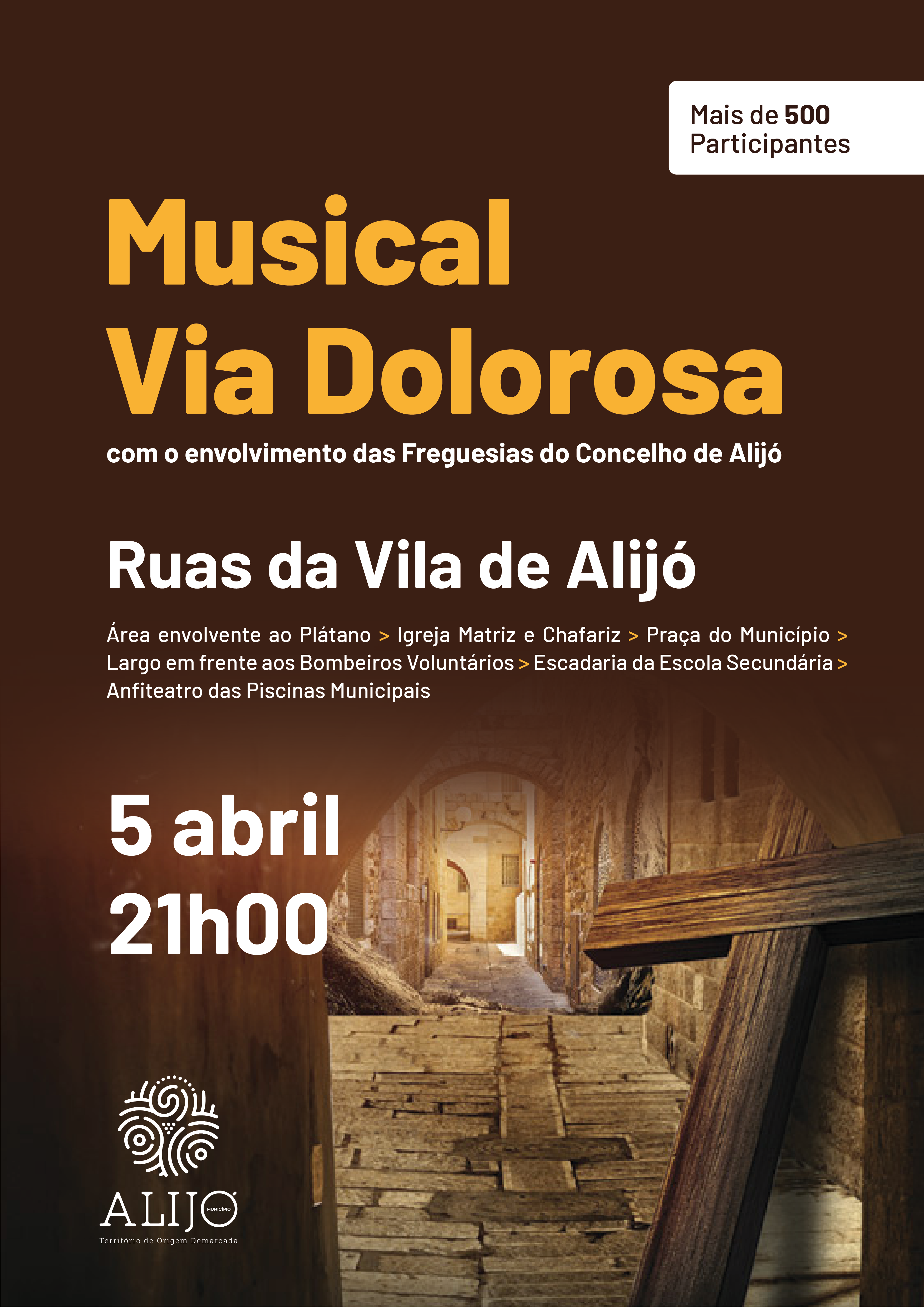 As ruas da Vila de Alijó vão receber a recriação da “Via Dolorosa” com a participação de mais de 500 pessoas de todas as freguesias do Concelho, naquele que será o maior espetáculo do género com participantes ativos. O espetáculo ao vivo terá lugar no dia 5 de abril, a partir das 21 horas, e inclui a encenação de vários quadros da Via Sacra em diferentes locais da Vila.