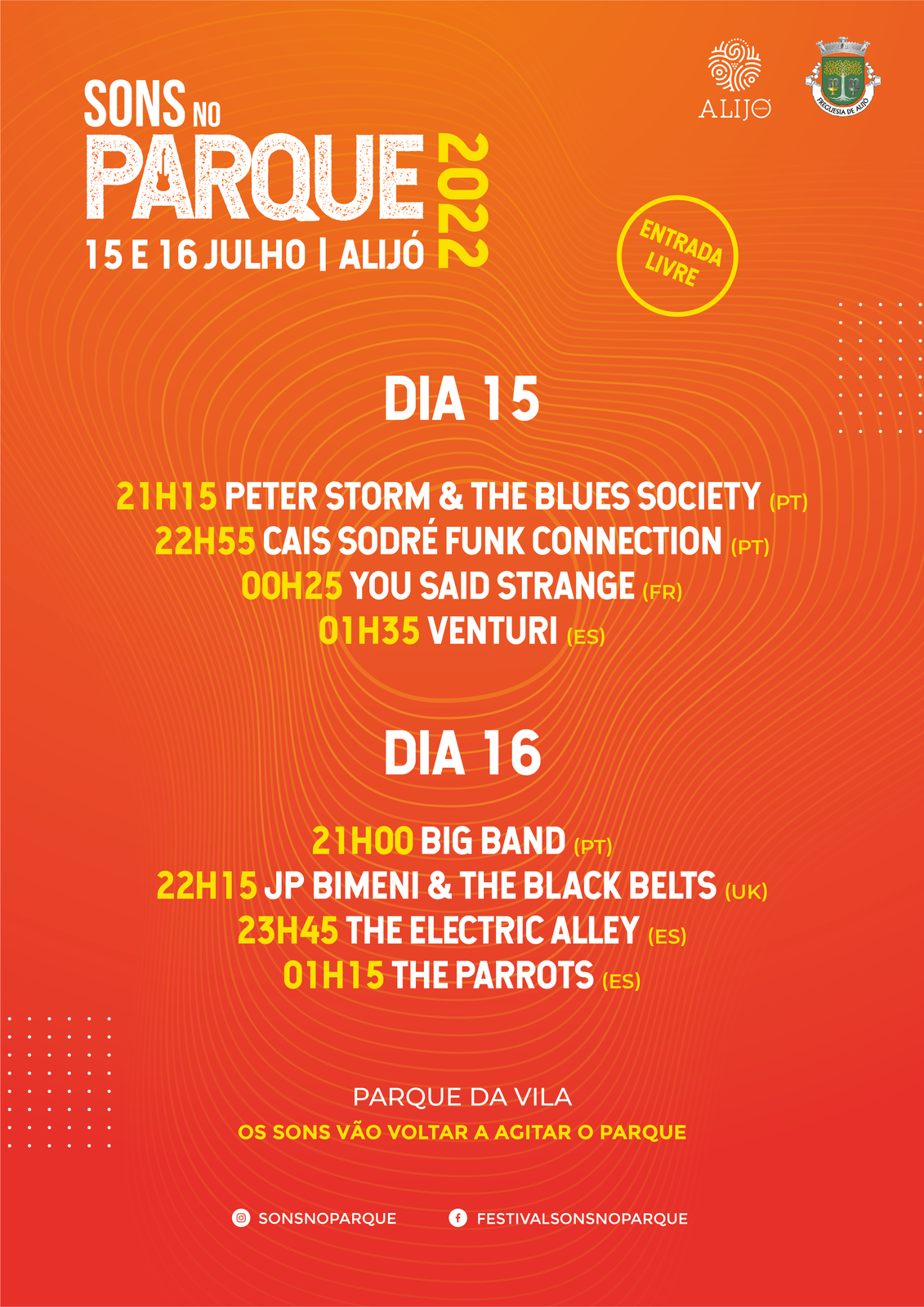 O Festival Sons no Parque está de volta à vila duriense de Alijó, a 15 e 16 de julho, com oito concertos gratuitos de artistas de Portugal, Espanha, França e Reino Unido, que prometem uma confluência de vários estilos musicais. Com um espírito descontraído, o Sons no Parque realiza-se no Parque da Vila, uma extensa zona verde com um anfiteatro natural, bem próximo do centro de Alijó.