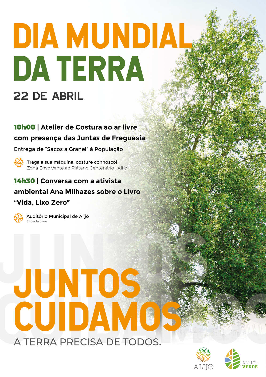 O Município de Alijó vai assinalar o Dia Mundial da Terra, que se celebra a 22 de abril, com um Atelier de Costura ao ar livre, a partir das 10 horas, junto ao Plátano Centenário, com a participação de todas as Juntas de Freguesias onde se realizaram ateliers nas últimas semanas, e que vai culminar com a entrega de “Sacos a Granel” à população.