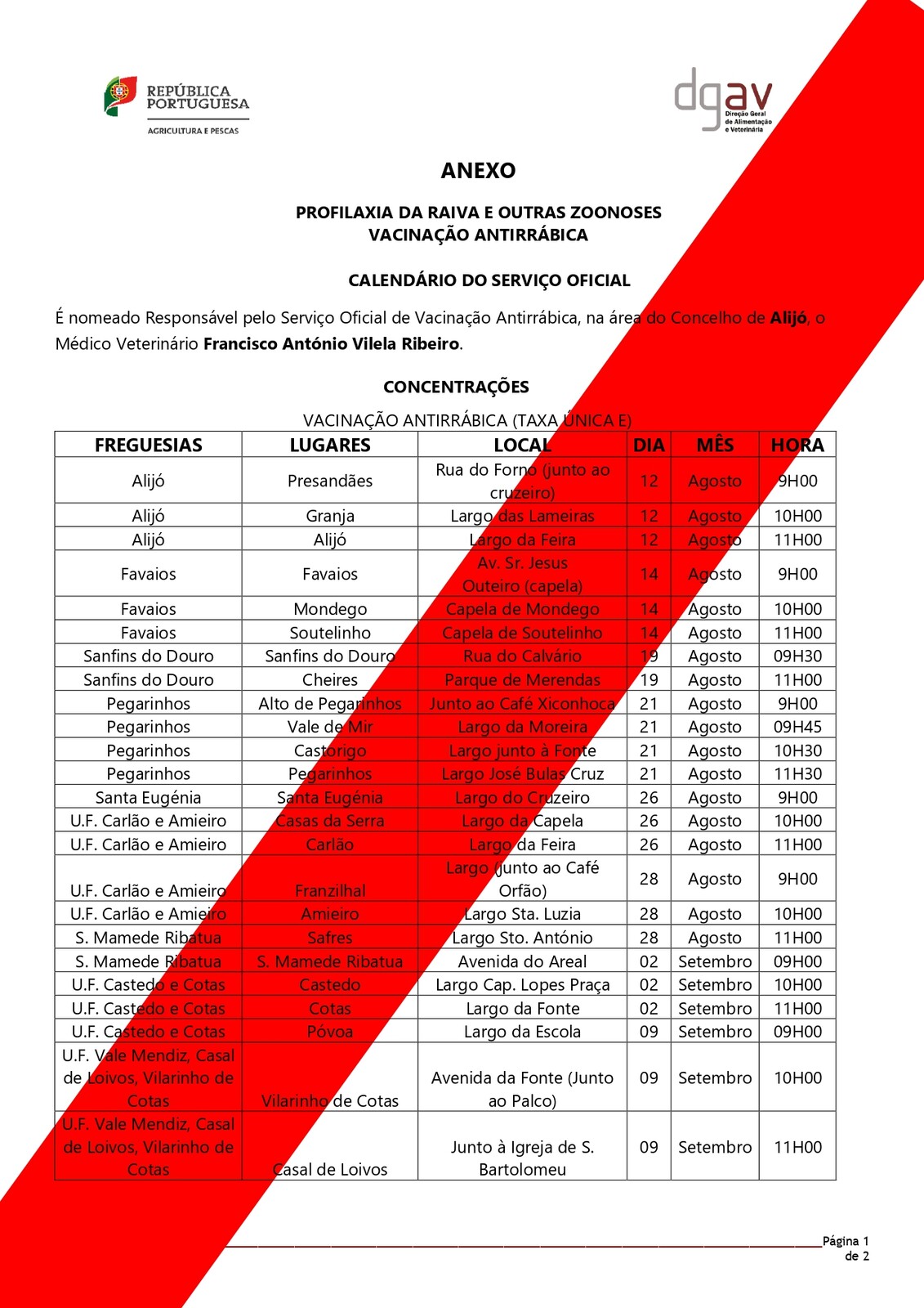 O Município de Alijó informa que vai decorrer, de 12 de agosto a 06 de outubro, a Campanha Oficial de Vacinação Antirrábica e Controle de Outras Zoonoses. A ação irá decorrer pelas 14 freguesias do concelho, nos locais, datas e horas indicadas no calendário publicado no Edital.