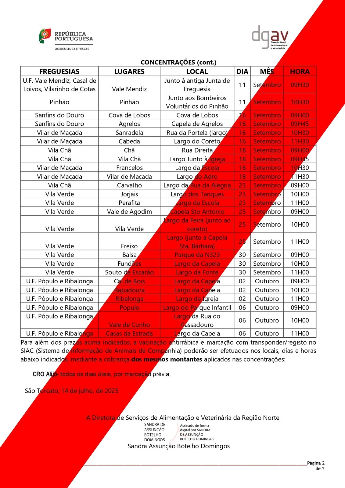 Além das datas indicadas no calendário, a vacinação antirrábica poderá ser efetuada no CRO de Alijó, todos os dias, com marcação prévia.