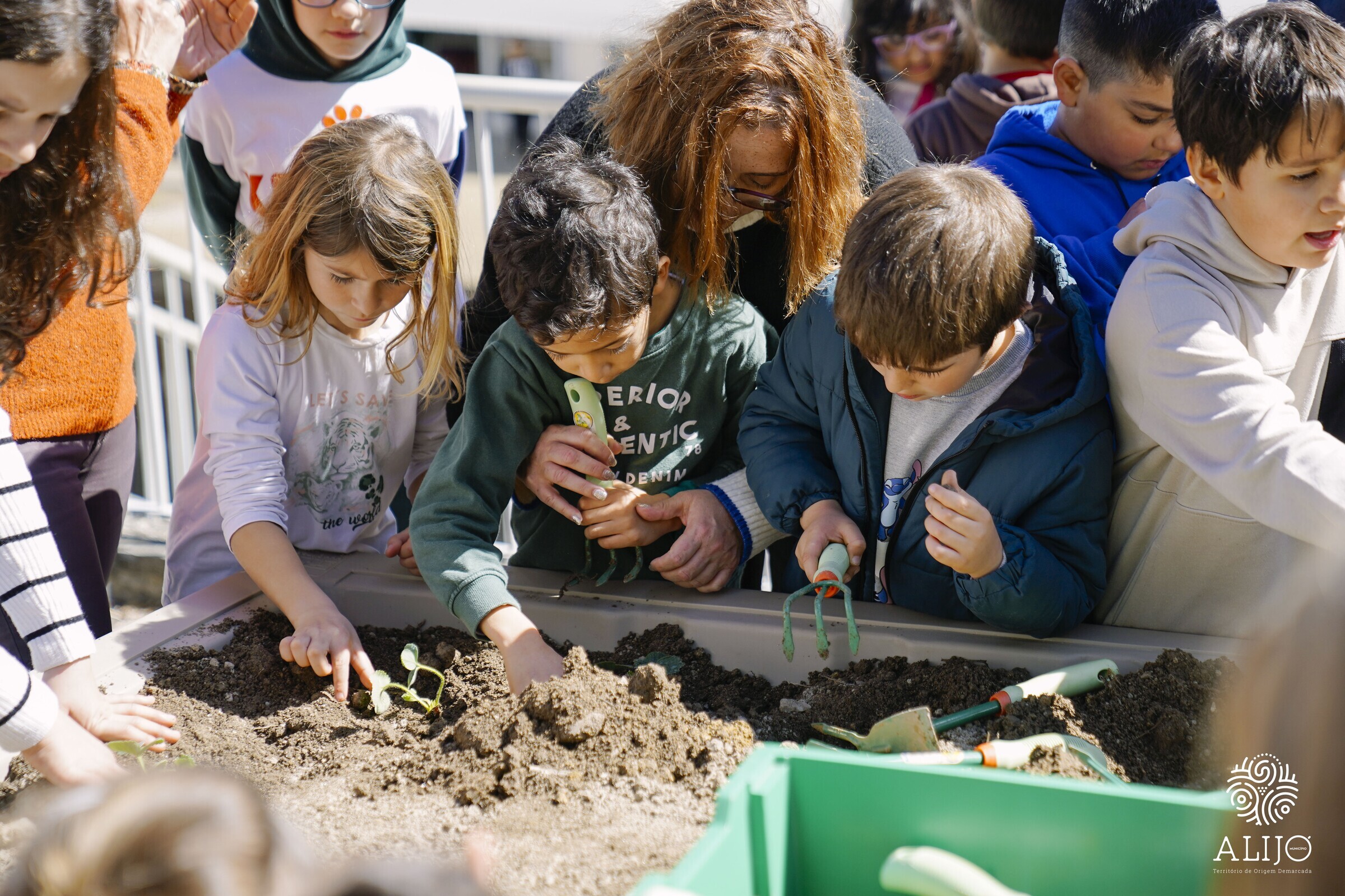 Os mais novos plantaram diferentes espécies no horto desenvolvido no âmbito do projeto municipal “Horta na Escola”, que integra o programa “Alijó + Verde”, financiado pelo Fundo Ambiental. A ocasião serviu também de pretexto para visitar o compostor instalado no Centro Escolar, e que foi construído e disponibilizado pelo Município, com o objetivo de reaproveitar os resíduos orgânicos ou biorresíduos produzidos na escola e a folhagem de jardim para criar um composto (adubo biológico) para utilizar no horto.