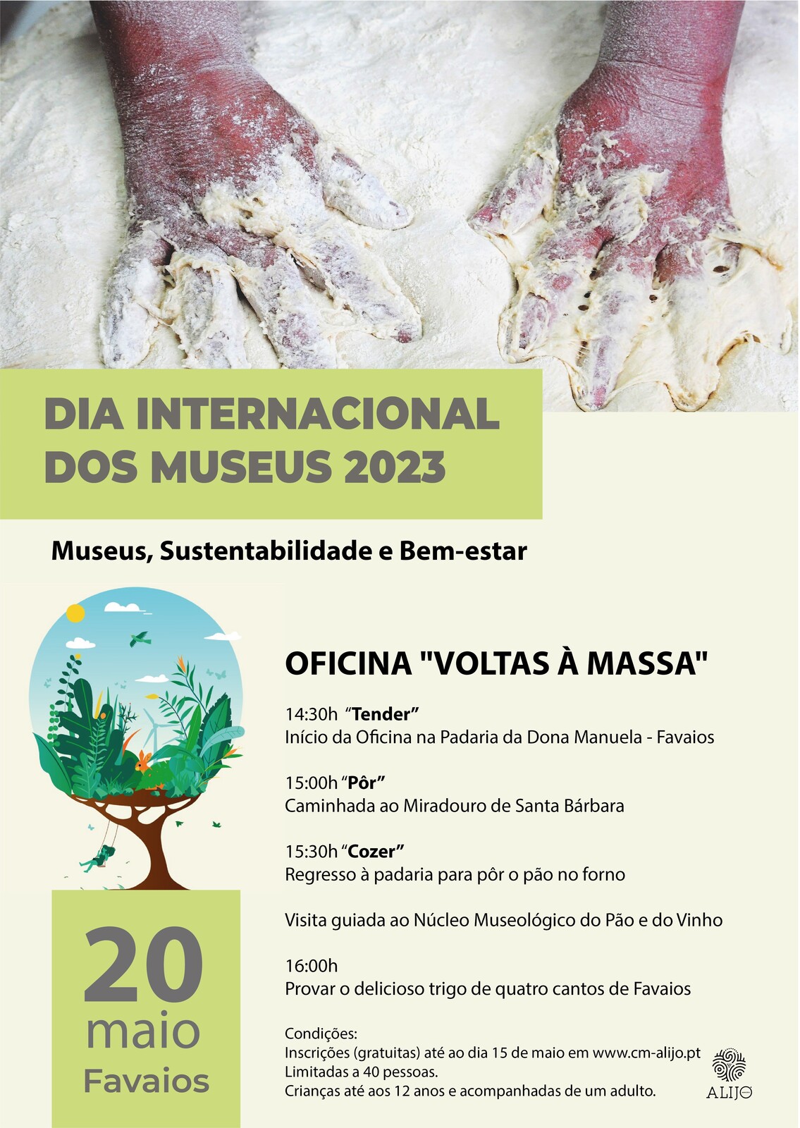 O Município de Alijó vai assinalar o Dia Internacional dos Museus com a Oficina “Voltas à Massa”, a 20 de maio, que inclui várias atividades ligadas ao Pão, um dos produtos homenageados no Núcleo Museológico de Favaios. A Oficina “Voltas à Massa” é dirigida a crianças até aos 12 anos, que podem ser acompanhadas por um adulto.