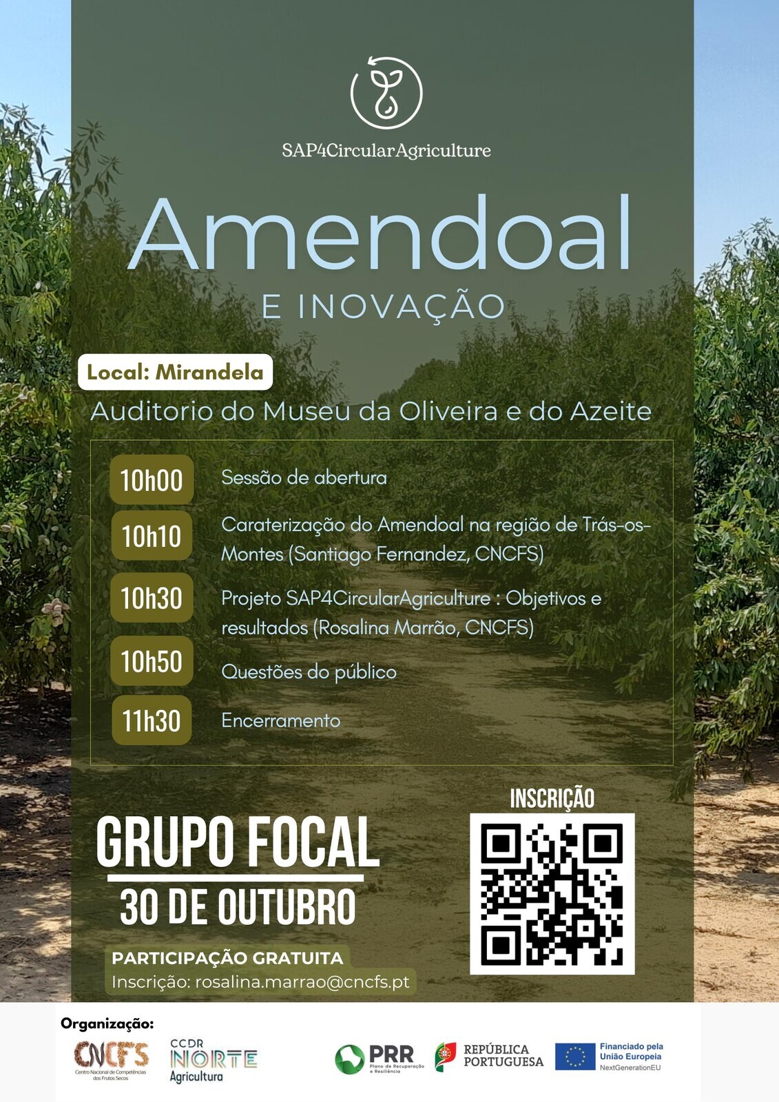 O Município de Alijó informa que vai realizar-se uma sessão de divulgação do projeto PRR designado “SAP4CircularAgriculture”, no próximo dia 30 de outubro, às 10 horas, no auditório do Museu da Oliveira e do Azeite, em Mirandela.