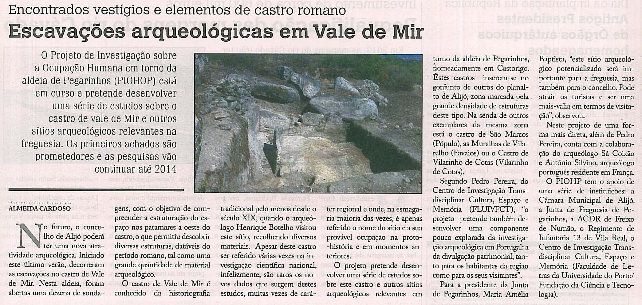 Os primeiros achados são prometedores e as pesquisas vão continuar até 2014. Veja aqui a notícia completa que saiu na edição de 04 de Outubro no jornal “Voz de Trás-os-Montes”.