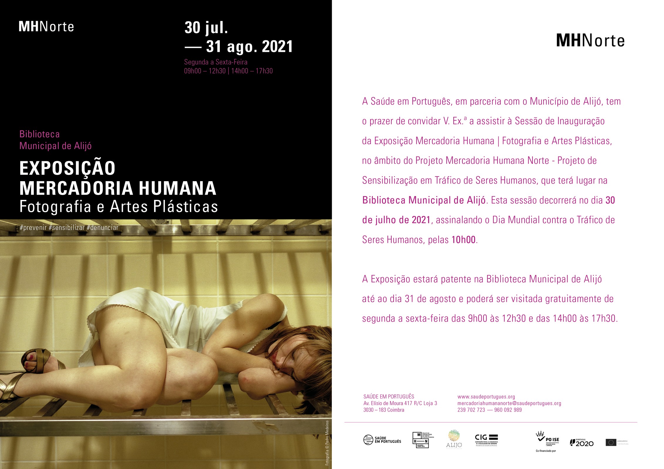 O Município de Alijó, em parceria com a organização Saúde em Português, vai promover a Exposição Mercadoria Humana | Fotografia e Artes Plásticas, no âmbito do Projeto Mercadoria Humana Norte - Projeto de Sensibilização em Tráfico de Seres Humanos, cuja inauguração terá lugar no próximo dia 30 de julho, às 10h00, assinalando o Dia Mundial contra o Tráfico de Seres Humanos.