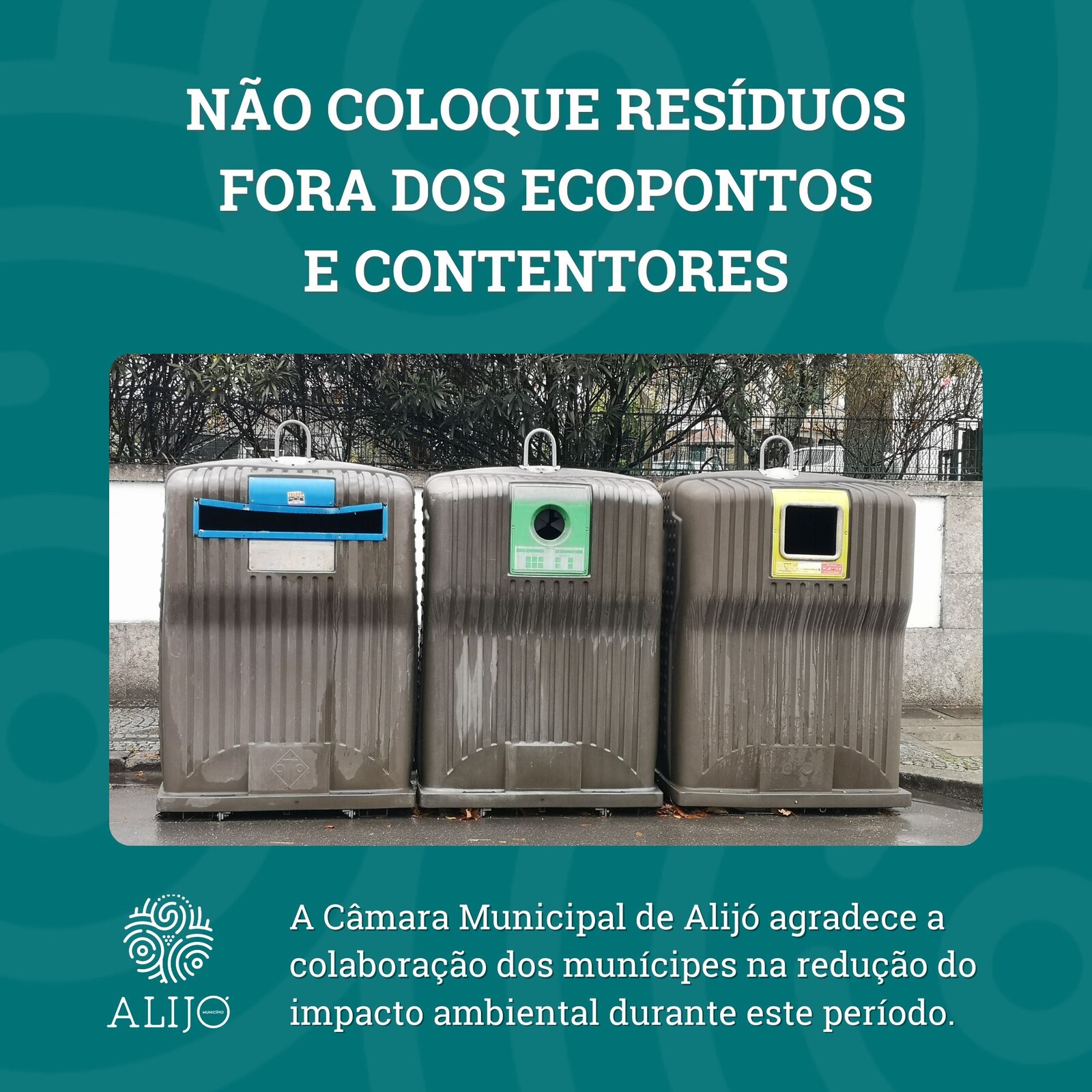 Considerando o acréscimo de população durante os meses de férias e o consequente aumento dos resíduos produzidos, o Município de Alijó apela à colaboração e compreensão de todos os munícipes para que tenham o cuidado de fechar bem os sacos de resíduos indiferenciados e amassar as caixas e embalagens depositadas nos ecopontos, de modo a ocupar o mínimo espaço possível.