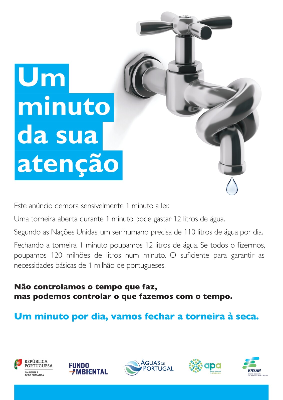 A campanha “Vamos fechar a Torneira à Seca” é promovida no quadro das Medidas de Combate à Seca do Ministério do Ambiente e da Ação Climática e conta com a parceria da Entidade Reguladora dos Serviços de Águas e Resíduos e financiamento do Fundo Ambiental do Ministério do Ambiente e da Ação Climática.
