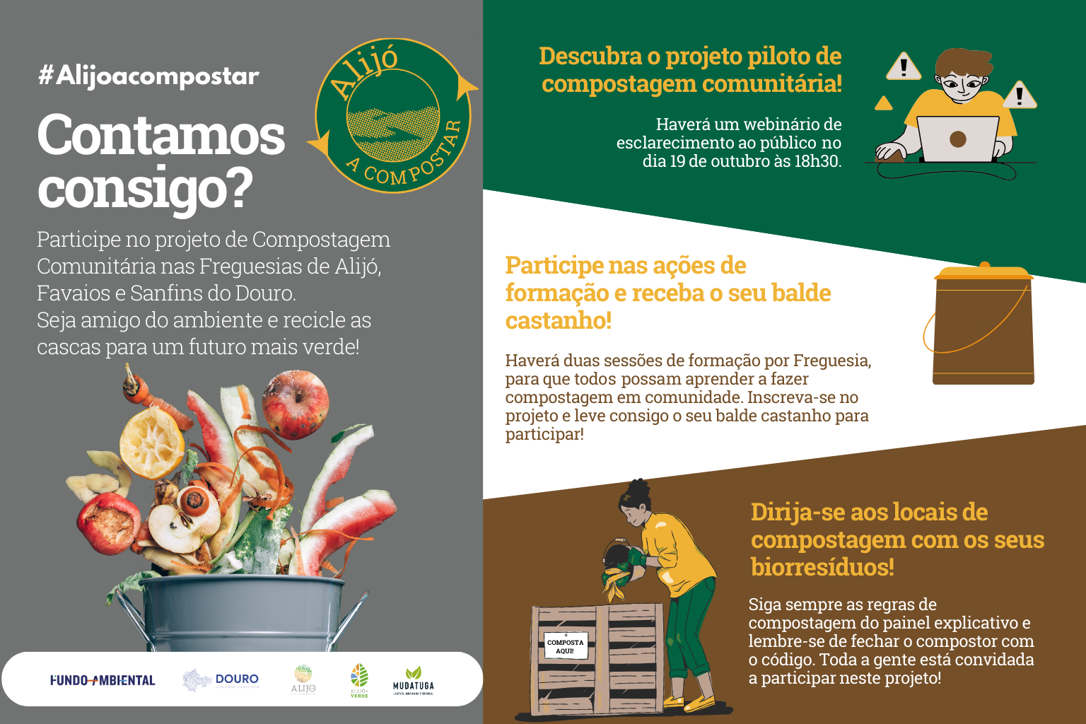 Já no dia 19 de outubro, terá lugar um webinário de apresentação do projeto destinado a todos aqueles que pretendem obter mais informações sobre a Compostagem Comunitária.