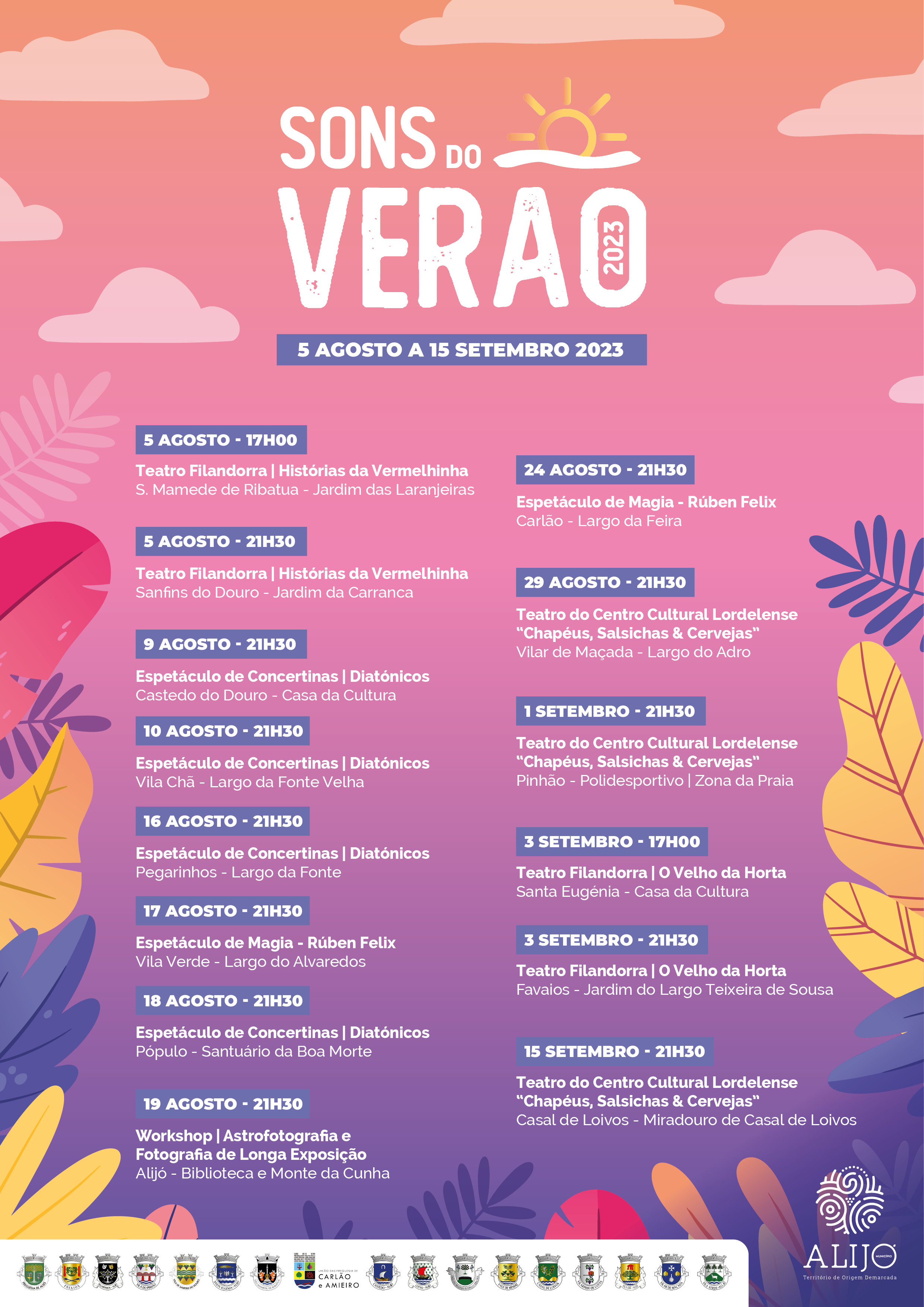 Ao apostar na descentralização destes eventos, o Município de Alijó pretende levar a cultura a todos e dinamizar espaços públicos das Freguesias durante os meses de verão.