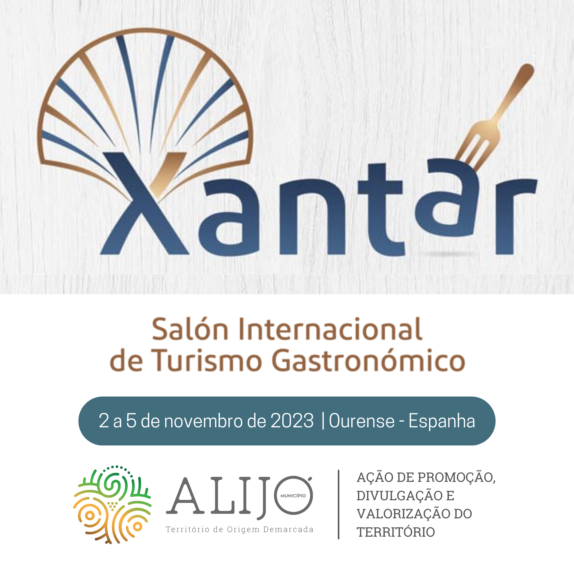 O Município de Alijó, em parceria com Juntas de Freguesia, vai estar presente no XANTAR - 24º Salão Internacional de Turismo Gastronómico com uma mostra dos melhores produtos endógenos do Concelho. Este evento, que é o mais importante certame gastronómico da Península Ibérica, terá lugar de 2 a 5 de novembro, em Ourense (Espanha).