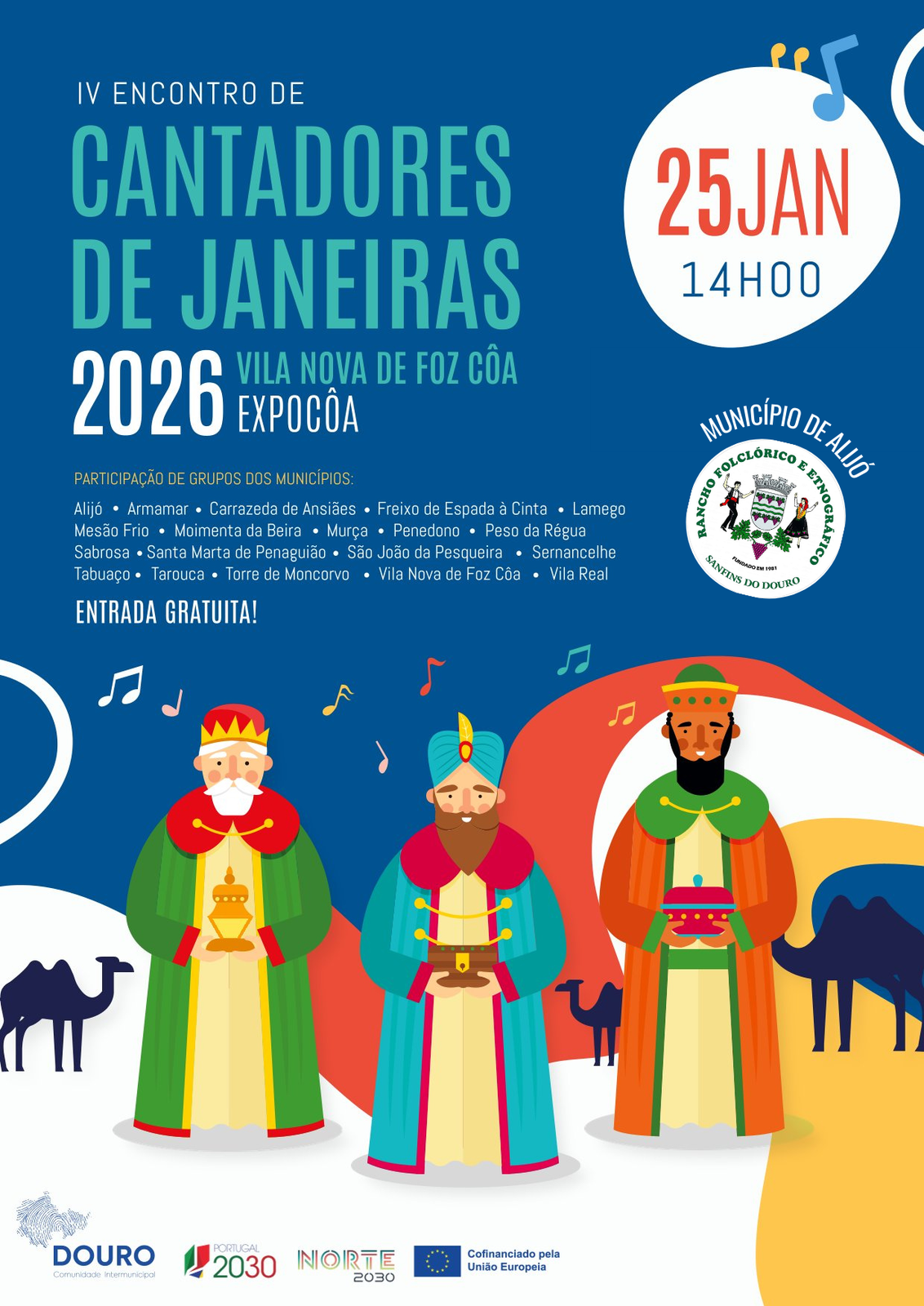 O Município de Alijó vai ser representado pelo Rancho Folclórico e Etnográfico de Sanfins do Douro no IV Encontro Intermunicipal de Cantadores de Janeiras, que se realiza no próximo dia 25 de janeiro, em Vila Nova de Foz Côa. Este Encontro é promovido pela Comunidade Intermunicipal do Douro (CIMDOURO) e reúne grupos dos 19 municípios que integram esta entidade.