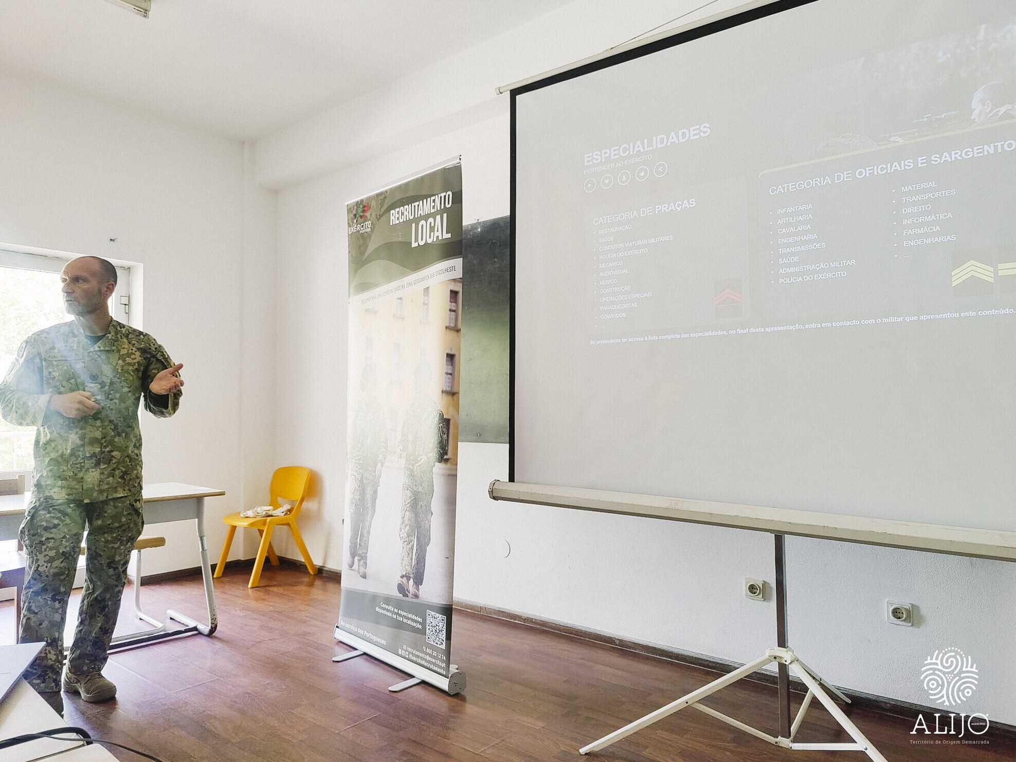 No passado dia 5 de agosto, decorreu uma sessão de divulgação do Regime de Voluntariado e Contrato no Exército Português. A sessão dirigida por dois militares destinou-se a jovens com idades compreendidas entre os 18 e os 24 anos com habilitações literárias mínimas de 9º ano de escolaridade.