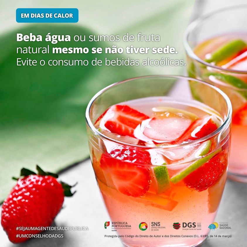 - Aumentar a ingestão de água ou de sumos de fruta natural sem açúcar e evitar o consumo de bebidas alcoólicas;