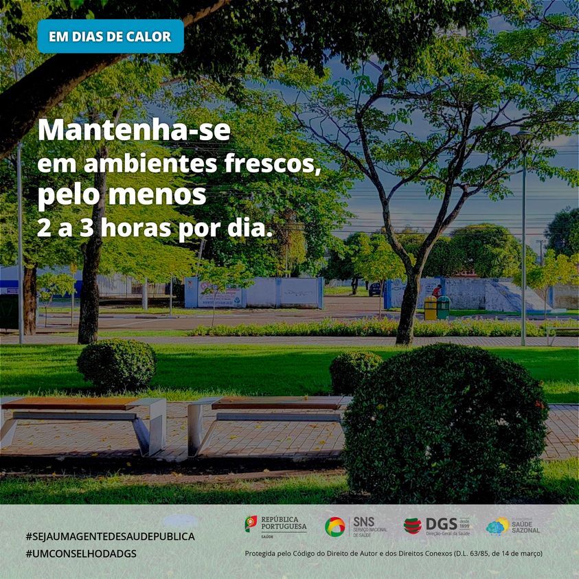 O Município de Alijó apela à adoção de medidas de proteção adicionais nos próximos dias, tendo em conta as temperaturas elevadas que se estão a sentir. Para se proteger dos efeitos negativos do calor intenso, a Direção-Geral da Saúde aconselha a manter-se informado, hidratado e fresco.