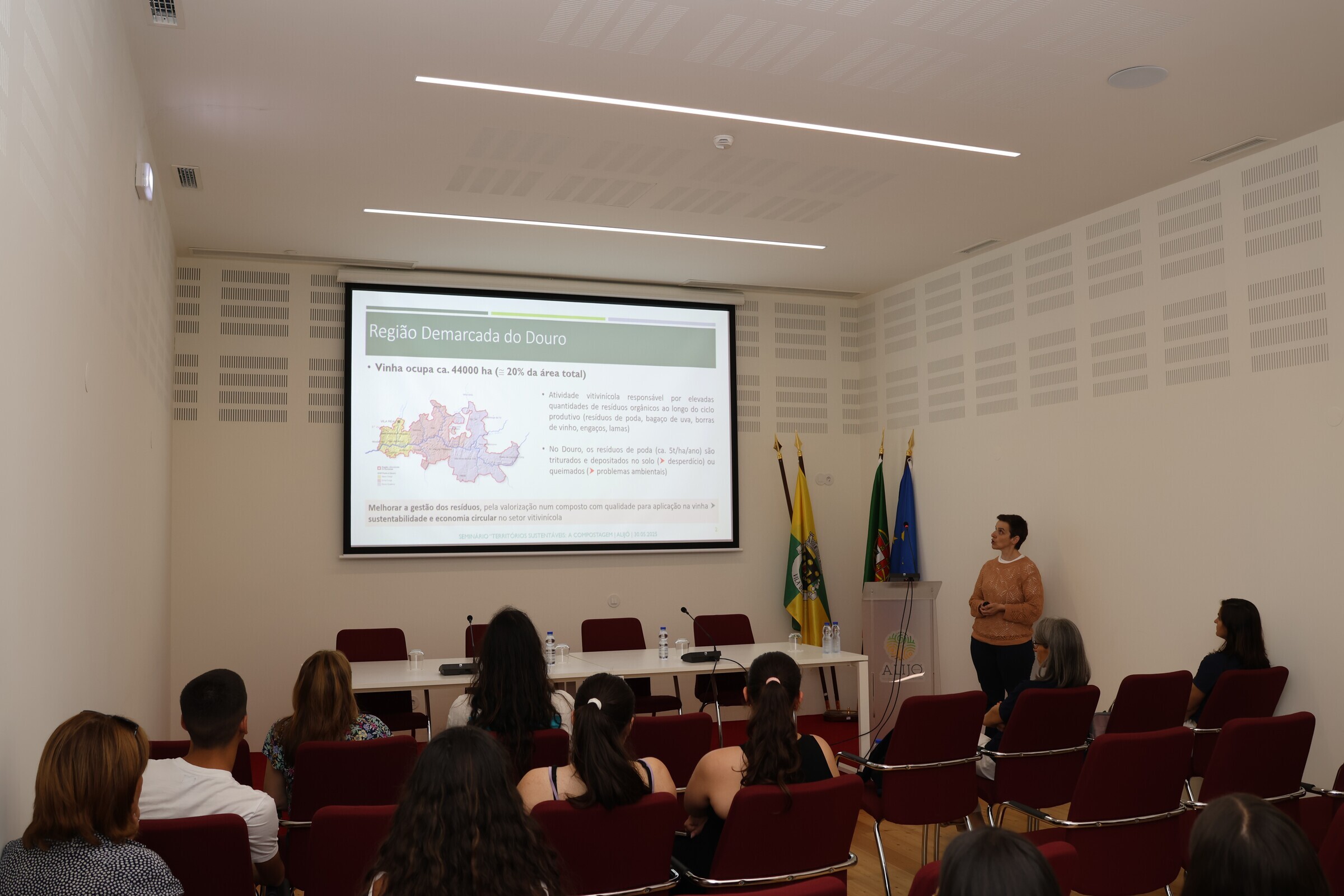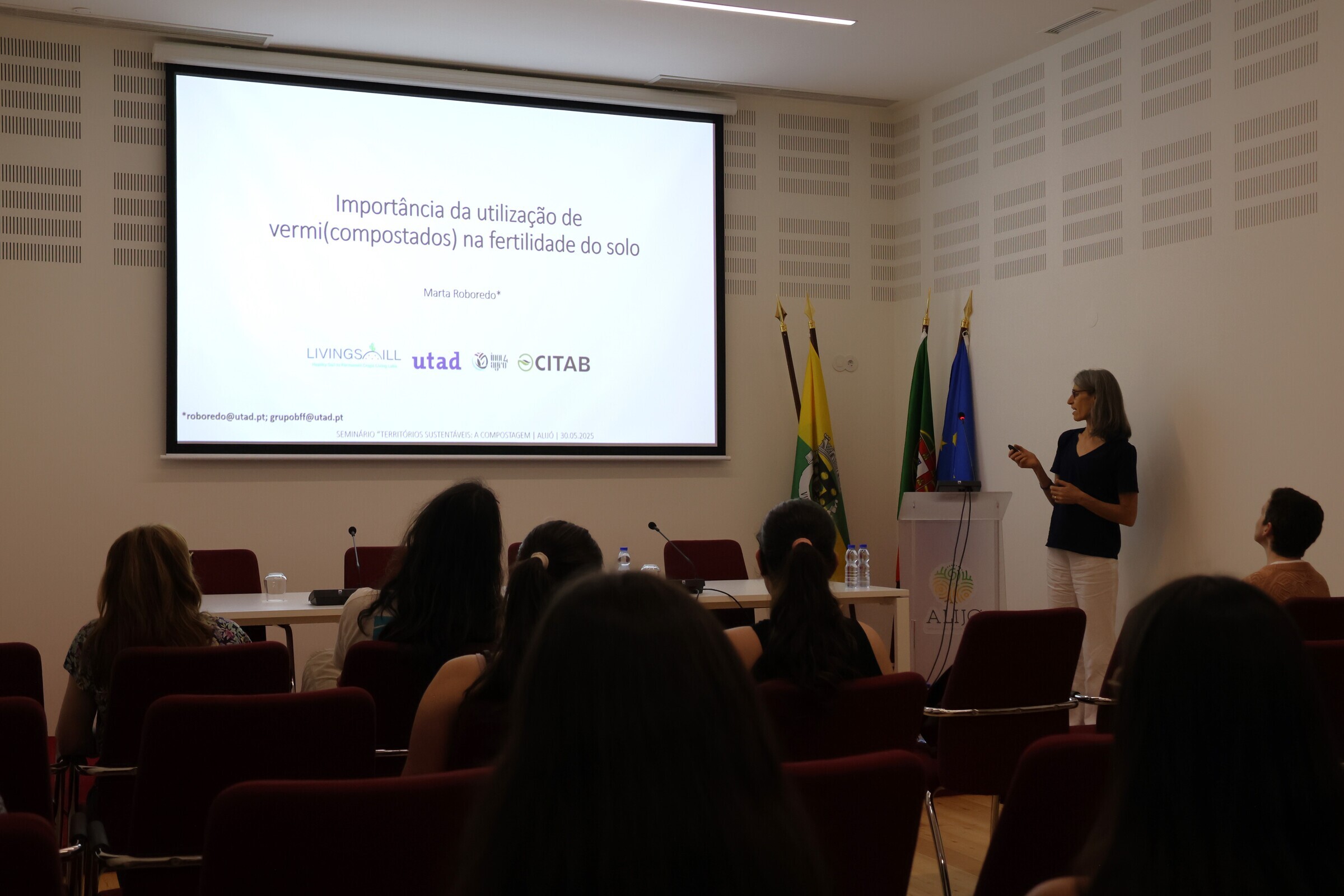 Maria Cristina Morais, da UTAD, falou sobre “Produção de biofertelizantes a partir de resíduos da vinha e lamas de ETAR”, e Marta Roboredo, também da UTAD, dedicou a sua apresentação à “Importância da utilização de vermi(compostados) na fertilidade do solo”.