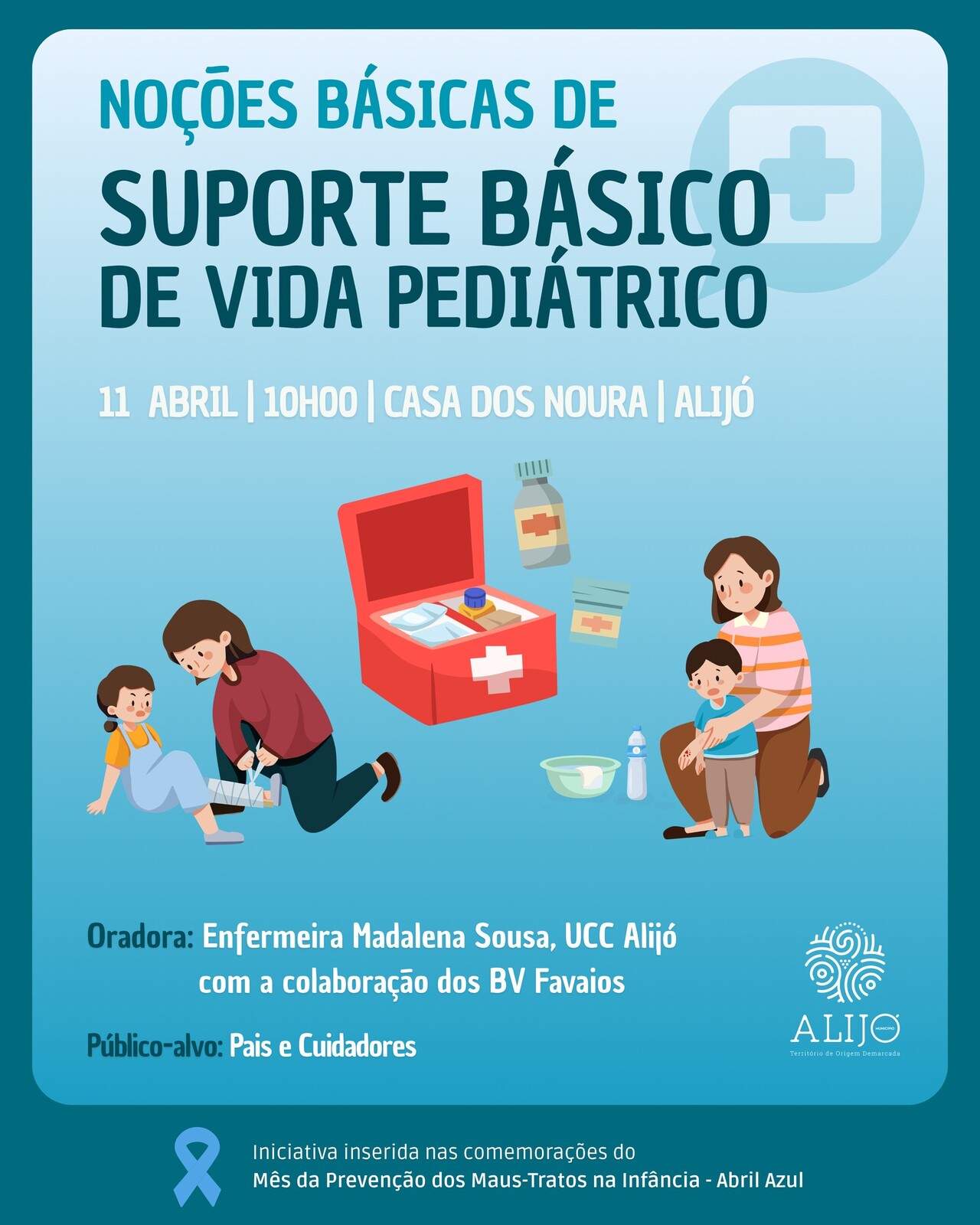Recordamos que estão abertas as inscrições para o Workshop “Noções Básicas de Suporte Básico de Vida Pediátrico”, que se realiza no próximo dia 11 de abril, às 10 horas, na Casa dos Noura, em Alijó. A iniciativa será orientada pela Enfermeira da Ucc Alijó, Madalena Sousa, em colaboração com os Bombeiros Voluntários de Favaios.