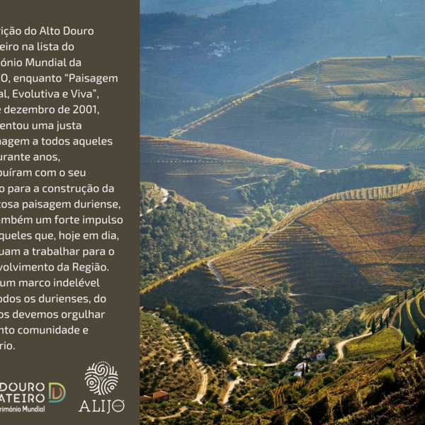 A inscrição do Alto Douro Vinhateiro na lista do Património Mundial da UNESCO, enquanto “Paisagem Cultural, Evolutiva e Viva”, a 14 de dezembro de 2001, representou uma justa homenagem a todos ...14 Dezembro 2021 -