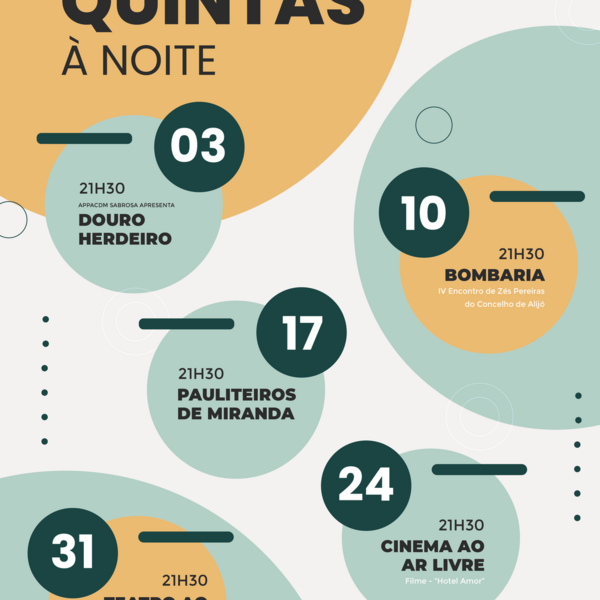 Com a chegada do verão, o Município de Alijó volta a privilegiar a cultura ao ar livre com a iniciativa “Quintas à Noite”, que inclui um programa com entrada gratuita dirigido a todos os públicos, ...01 Julho 2025 -