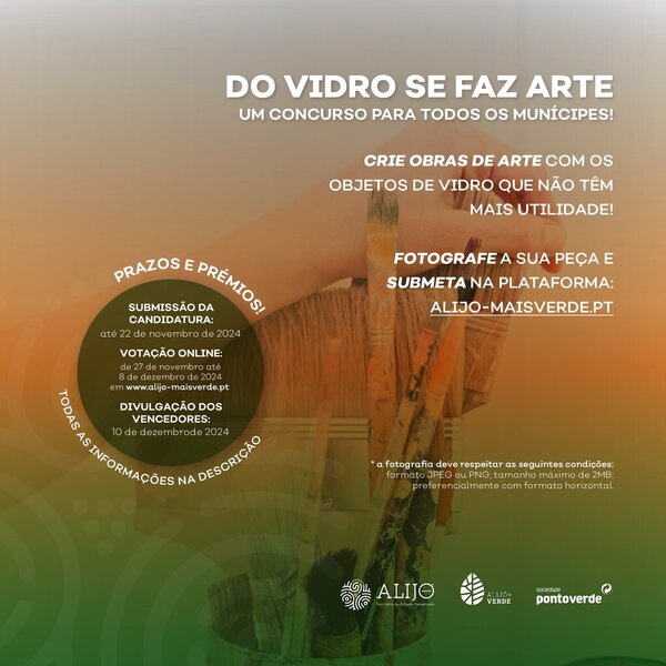 Termina esta semana o período para participar no concurso “Do Vidro se faz Arte”, aberto a toda a população. O objetivo é reutilizar objetos de vidro e transformá-los em obras de arte, seja ...18 Novembro 2024 -