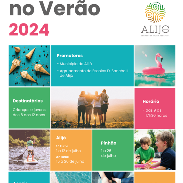 O Município de Alijó vai promover o MOVE(TE) NO VERÃO, em parceria com o Agrupamento de Escolas D. Sancho II - Alijó, de 01 a 26 de julho. Esta iniciativa vai proporcionar várias atividades ...17 Junho 2024 -